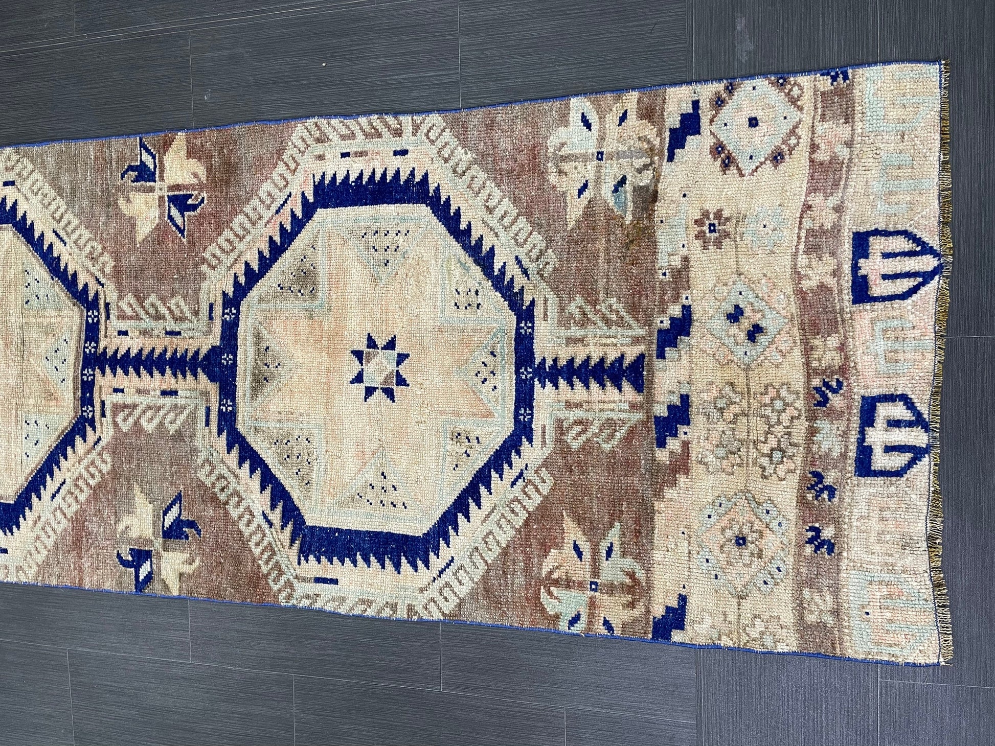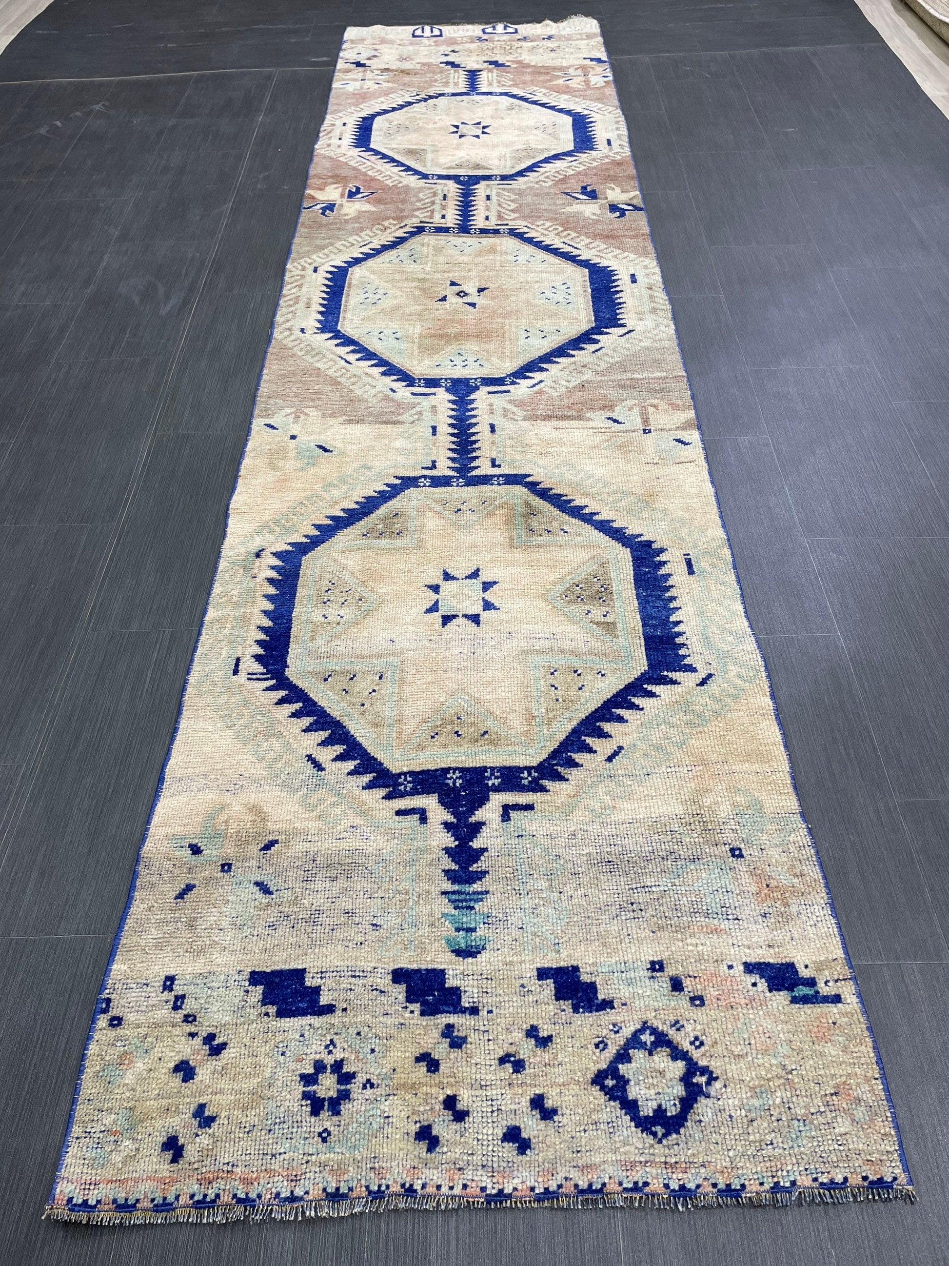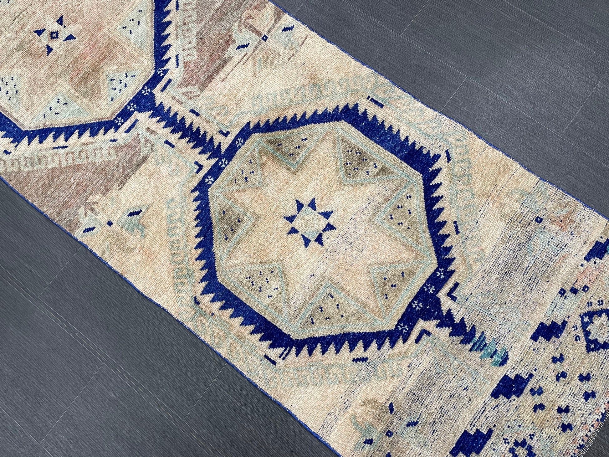 Muted Vintage Runner Rug 2.8 x 11.4 Muted Turkish Runner Star Rug Navy Oushak Runner Rug Hallway Runner Kitchen Runner Rug Wool Runner