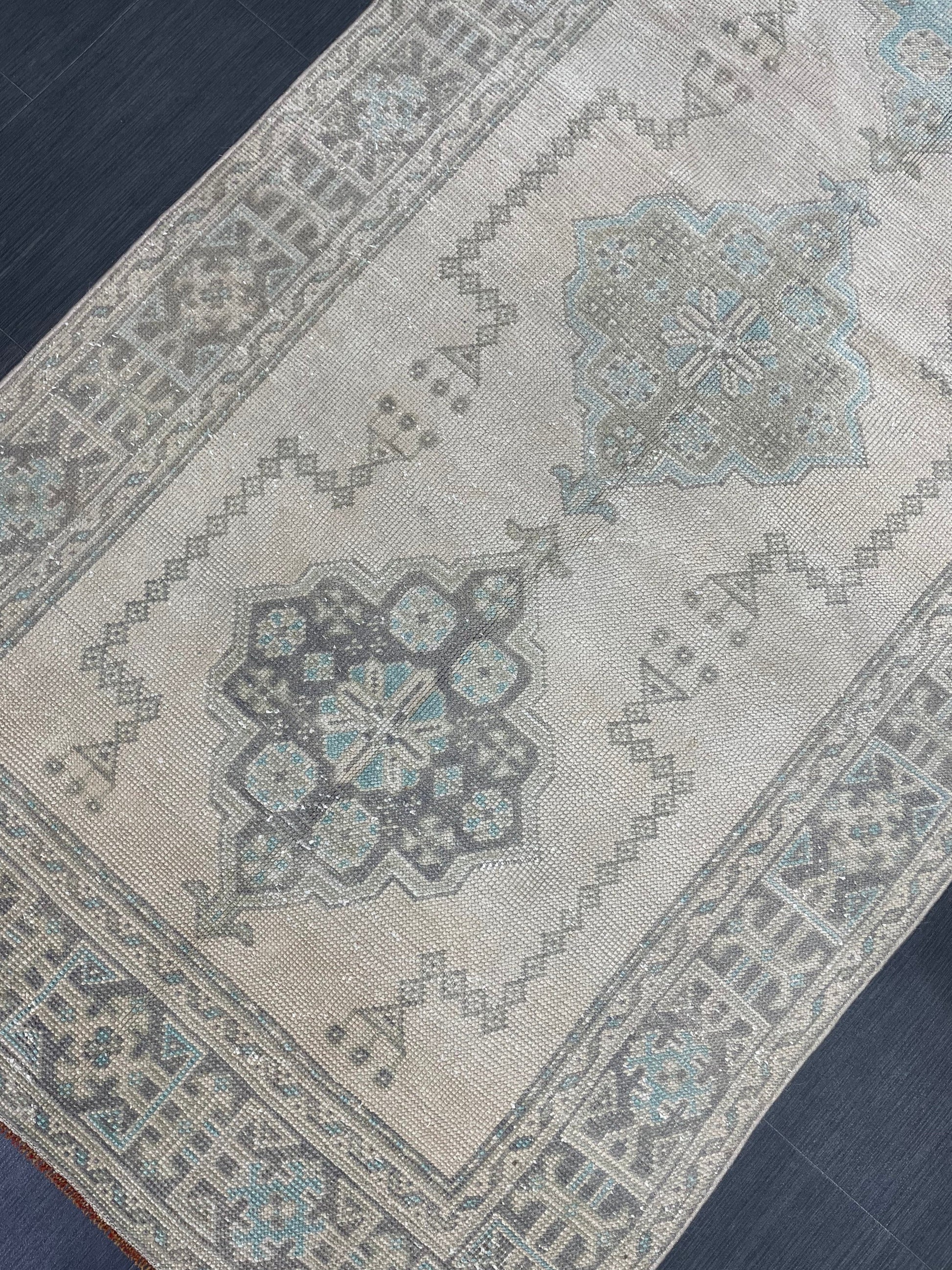 *A vintage handmade Turkish rug made of hand spun wool and double knotted on sturdy foundation,