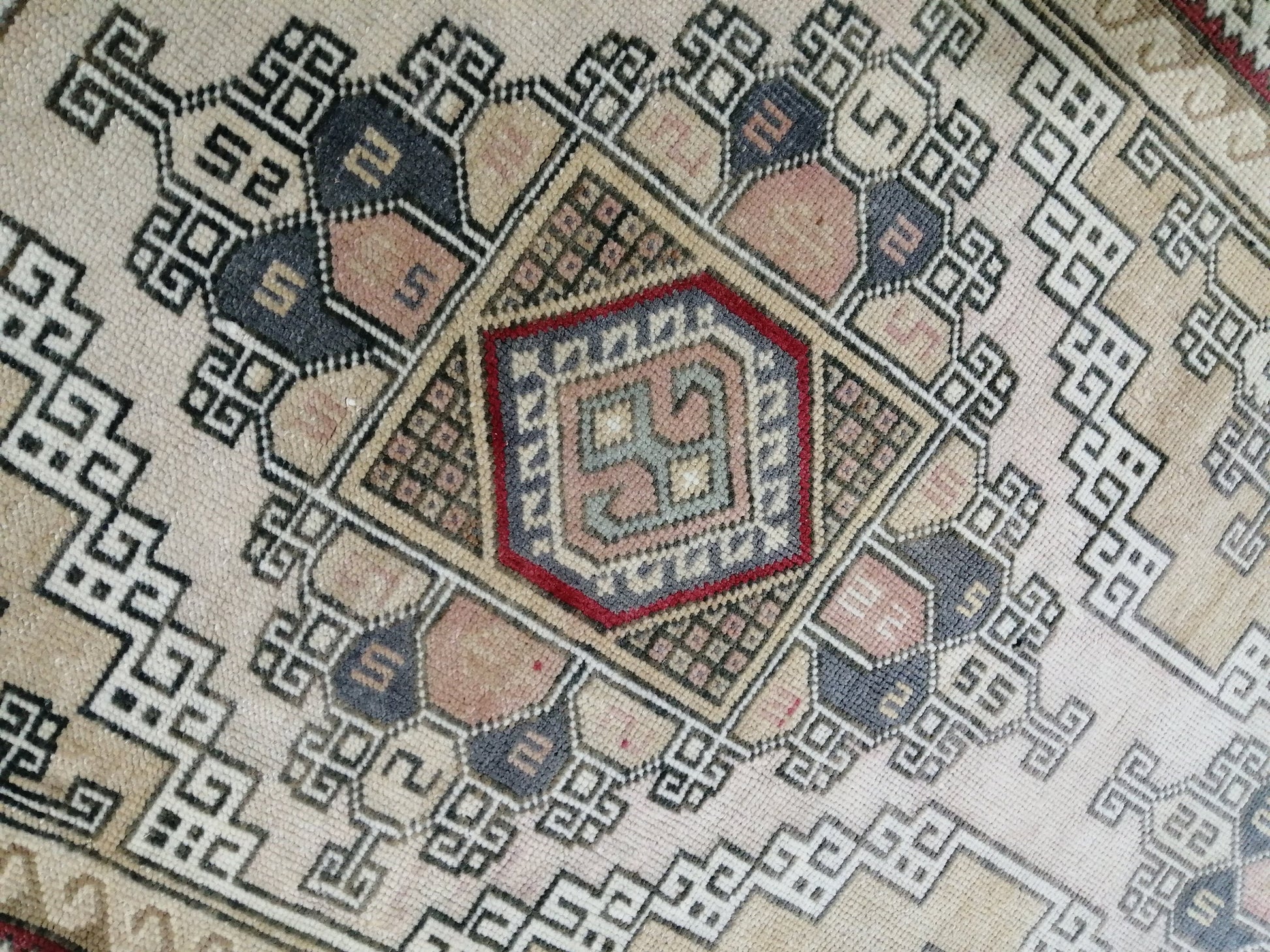 *A vintage handmade Turkish rug made of hand spun wool and double knotted on sturdy foundation,