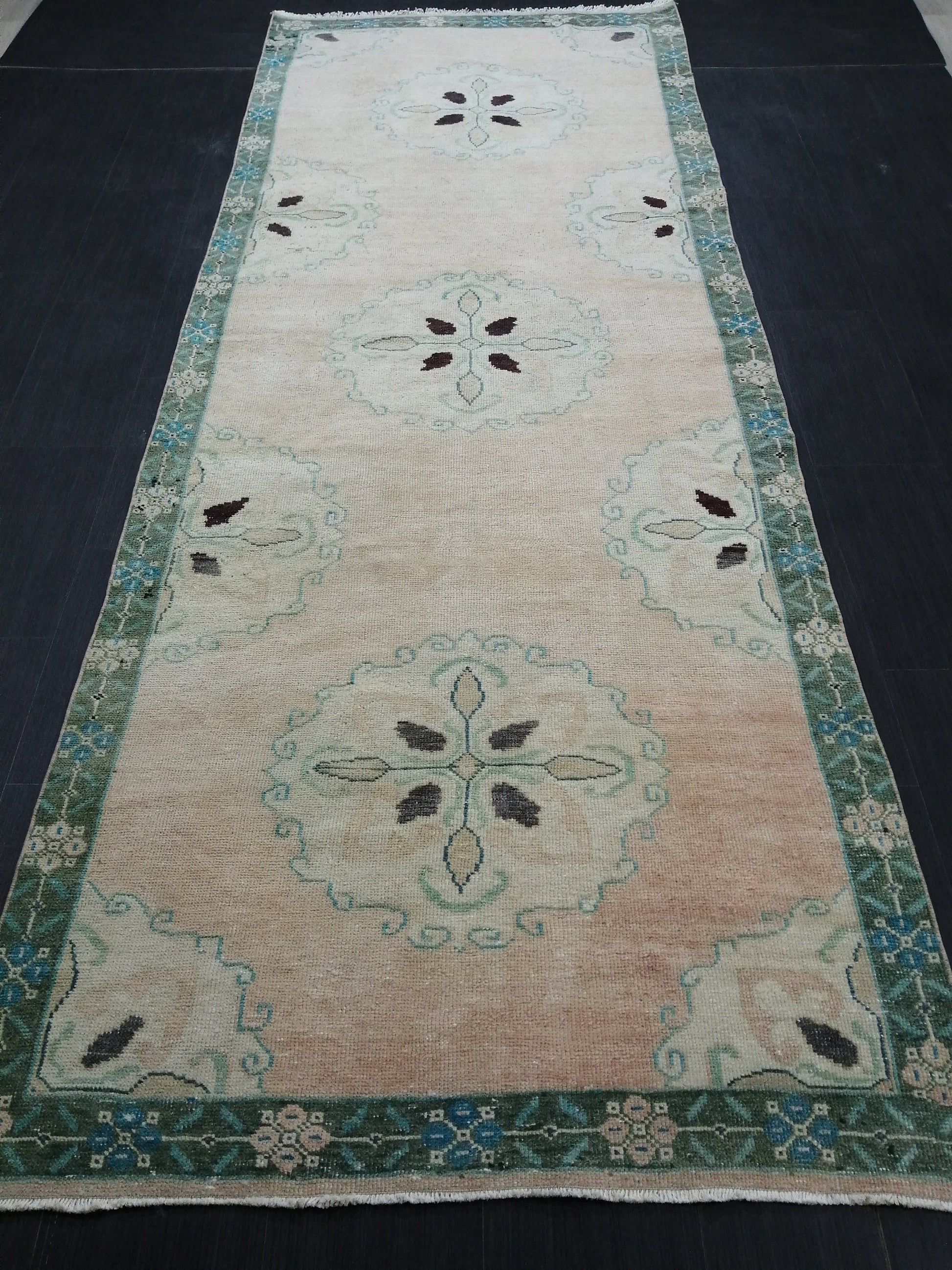 Muted Vintage Runner Rug Turkish Runner Rug Vintage Runner 4x11 Rug Hallway Runner Rug Kitchen Runner Rug Wool Runner Rug Floral Runner Rug