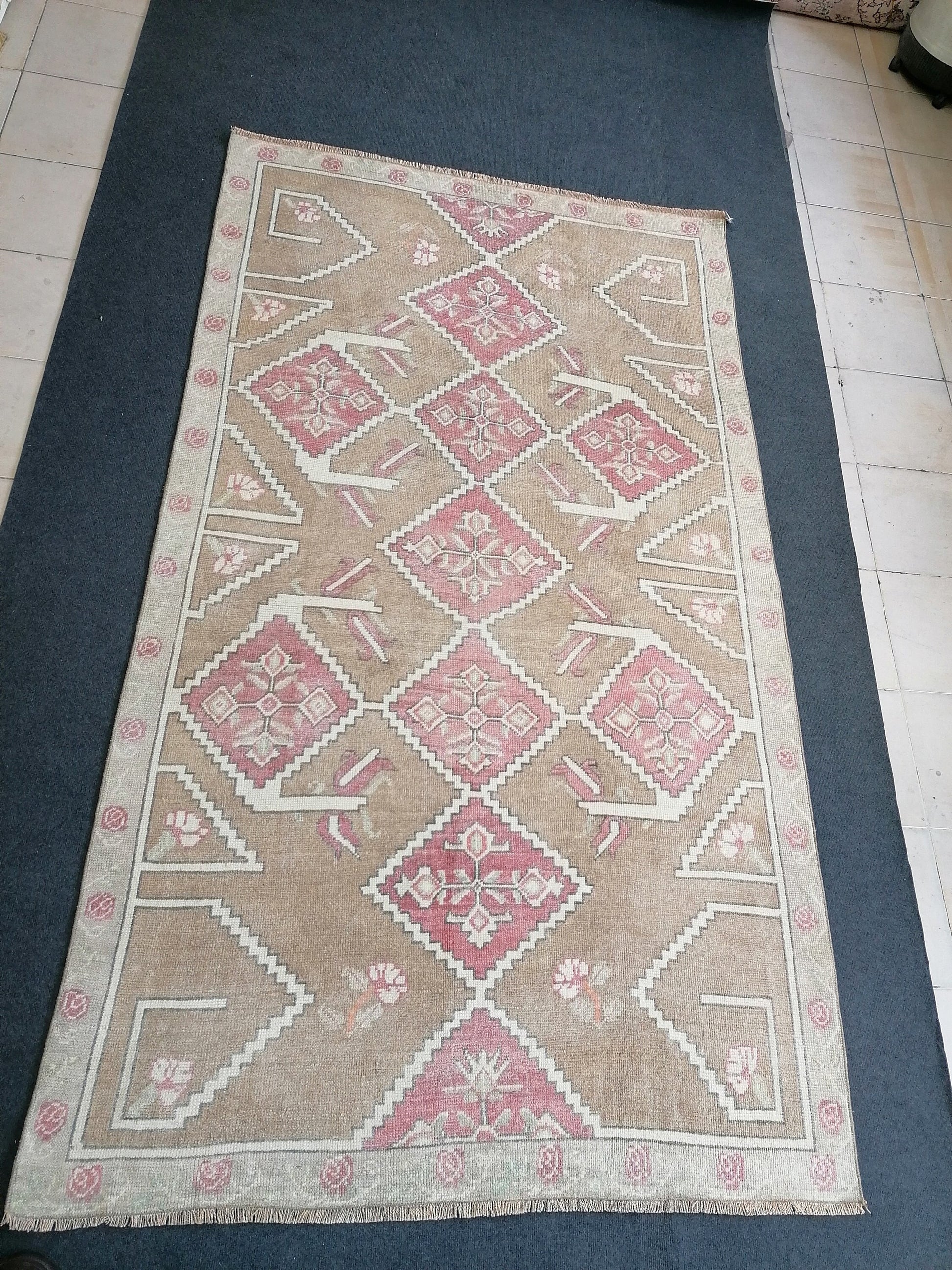 Neutral oushak rug, vintage wool rug turkish handmade rug 4'10x8'5 runner rug, living room rug, kitchen runner
