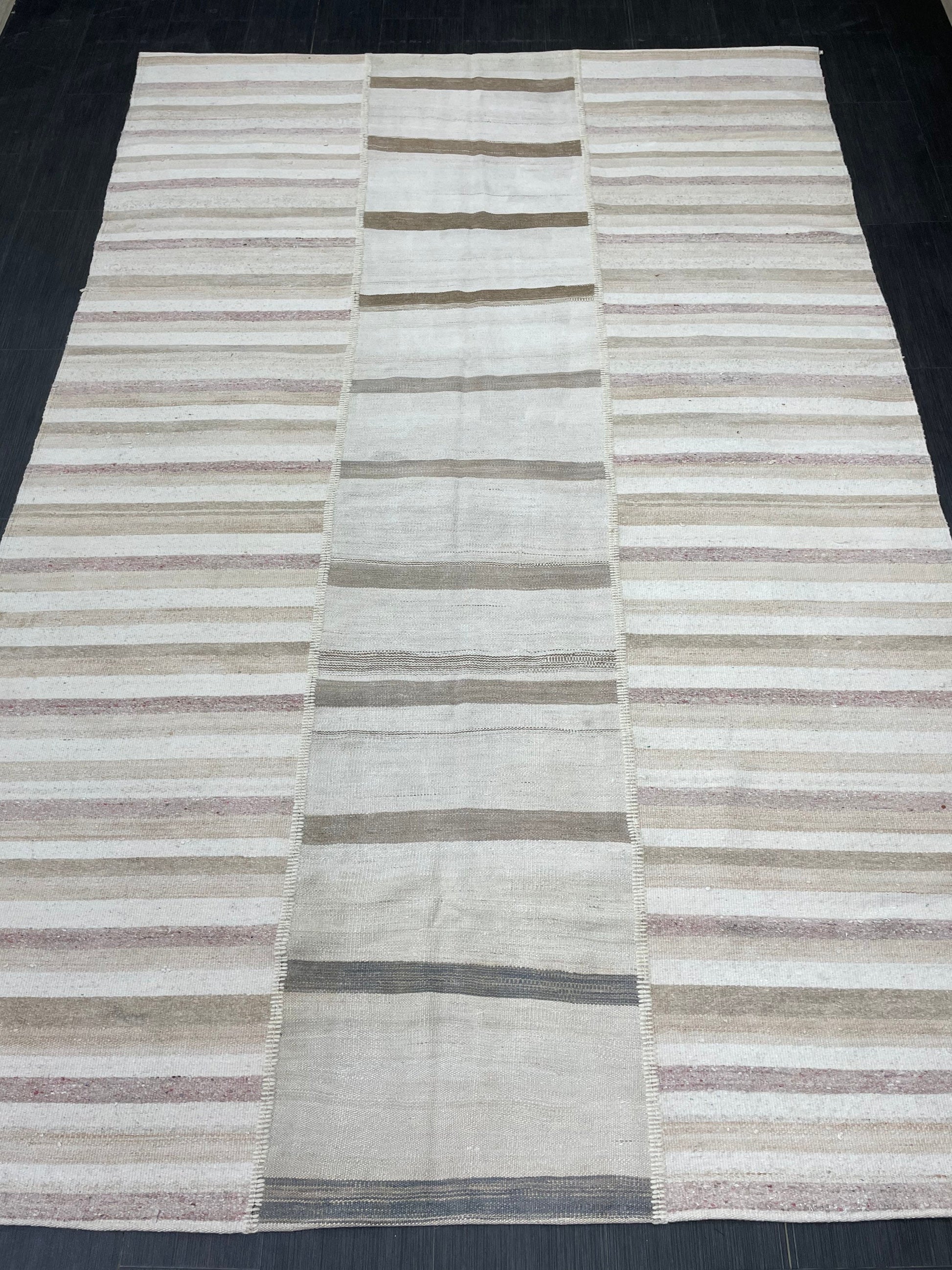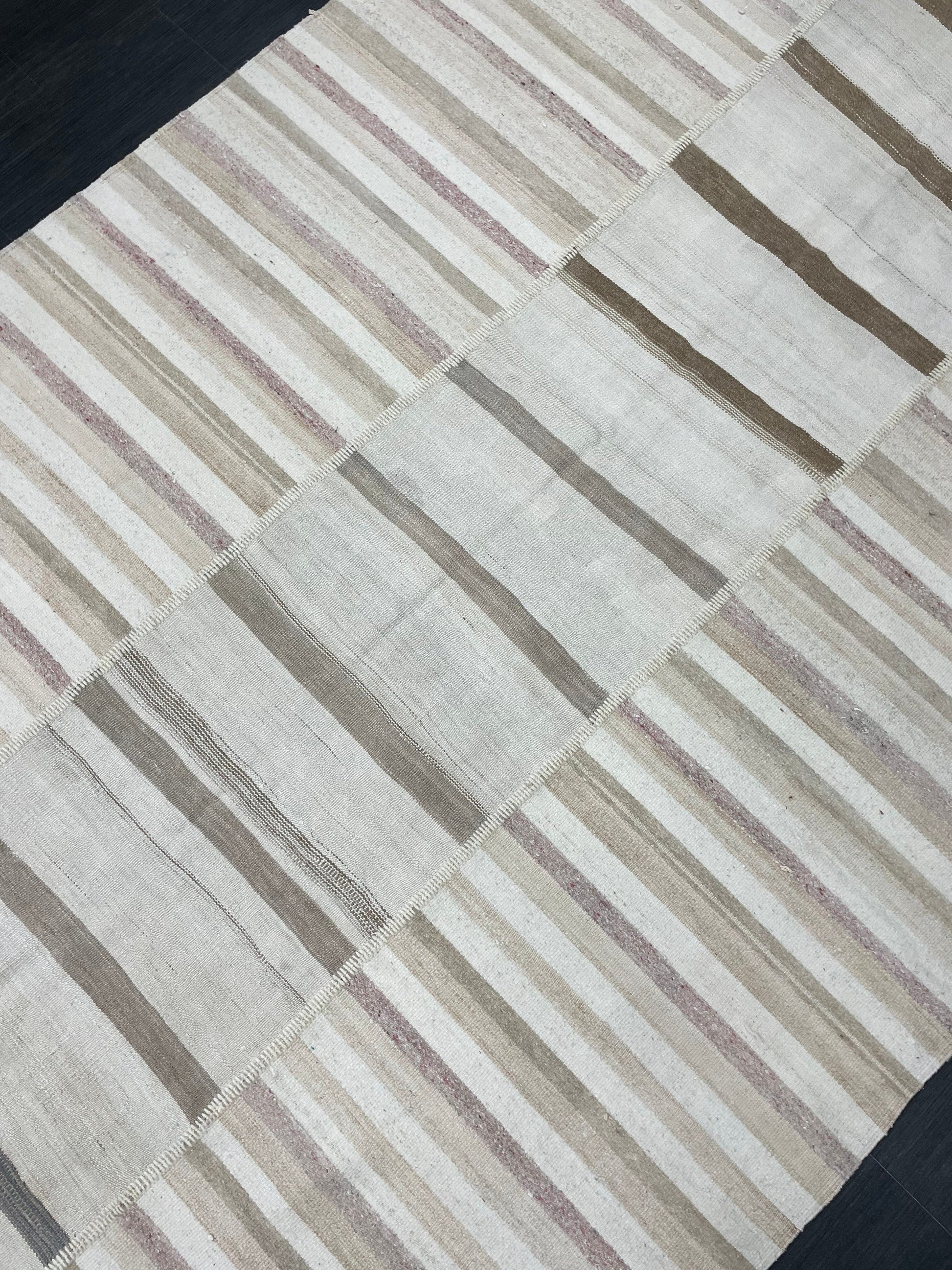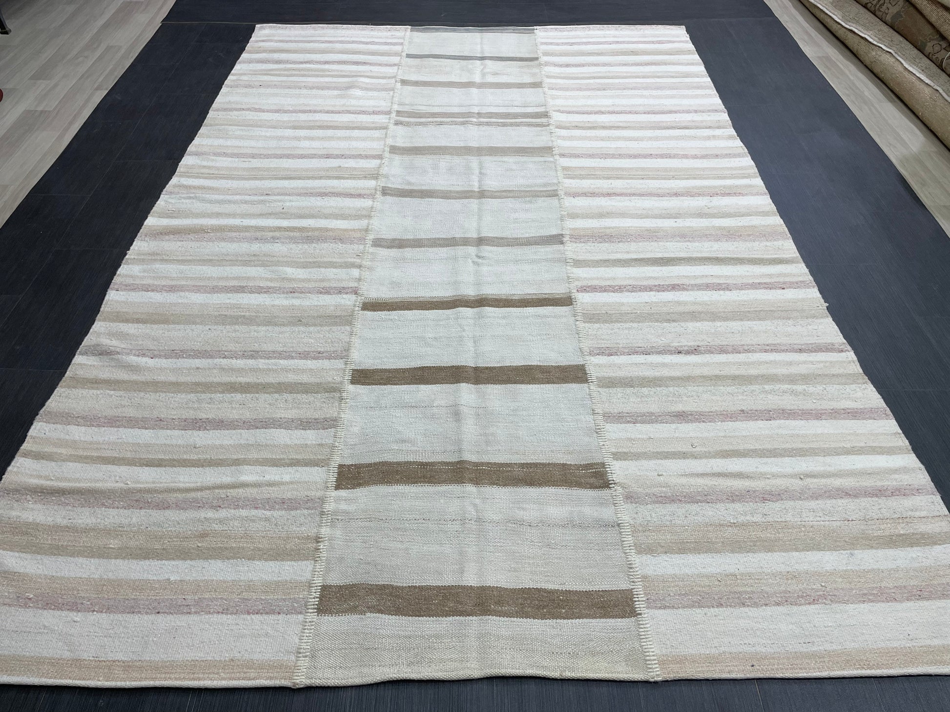 Neutral Vintage Rug 6.4 x 9.7 Stripe Wool Rug Muted Vintage Flat woven Rug Neutral Flatweave Carpet Stripped Rug Handmade Rug Turkish Kilim
