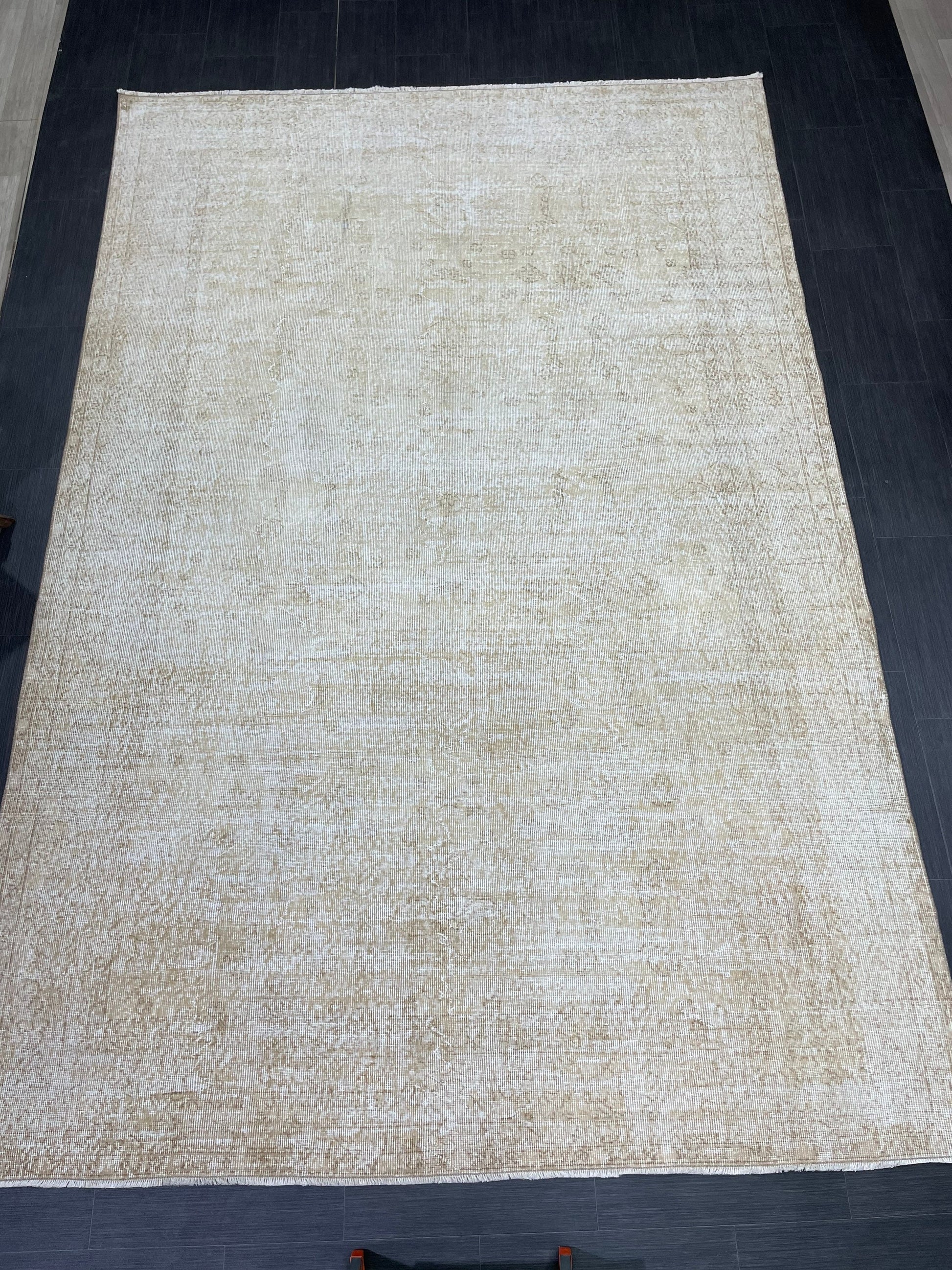 Neutral Vintage Rug Muted TURKISH 7 x 10.4 Rug Handmade Rug Distressed Rug Large Turkish Oushak Rug Wool Rug Hand Knotted Rug