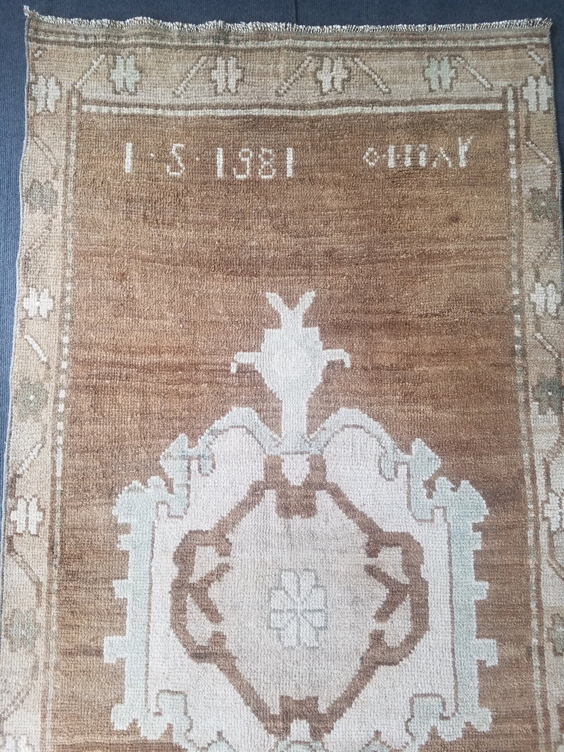 Neutral wool runner rug 3'3x9'5 oushak runner rug unique handmade rug kitchen runner
