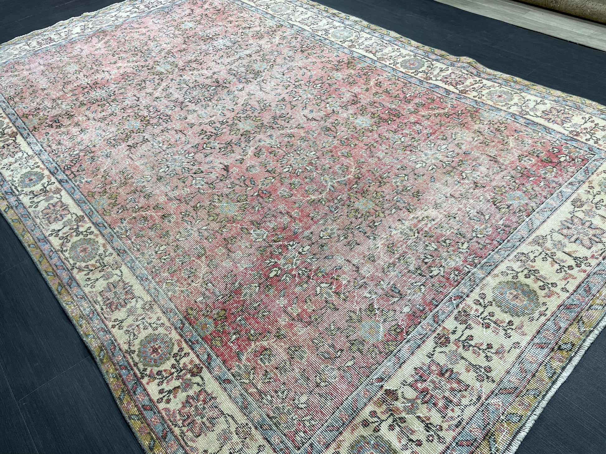 Oriental Vintage 6.6 x 10.6 Rug Vintage Hand Knotted Rug Wool Oushak Rug Hand Made Rugs Vintage Turkish Rug Persian Rug Distressed Rug