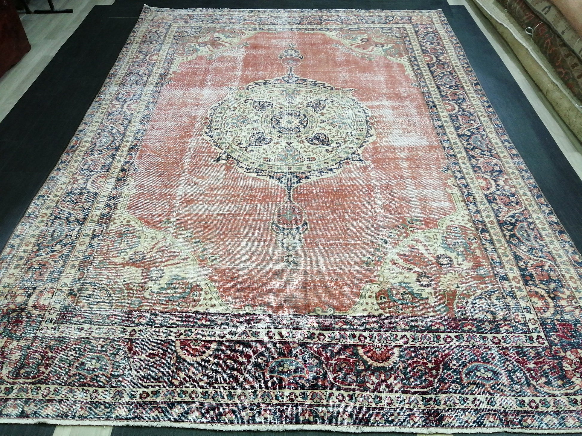 Oriental Vintage RUG 8x11 Distressed Rug Turkish Vintage Persian Rug Vintage Rug Wool Oushak Rugs Antique Turkish Rug Muted Living room
