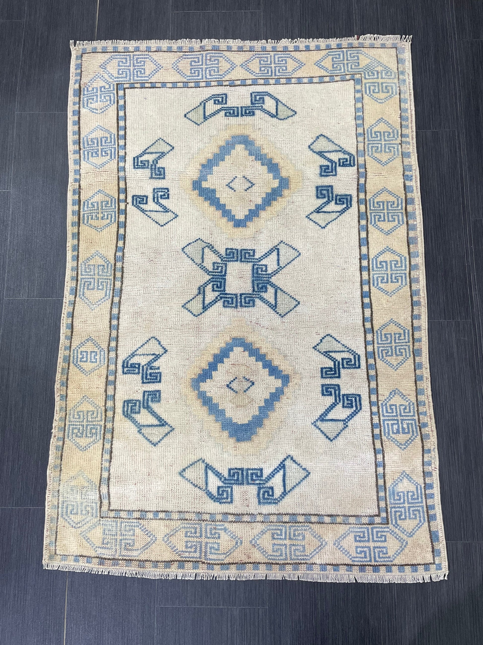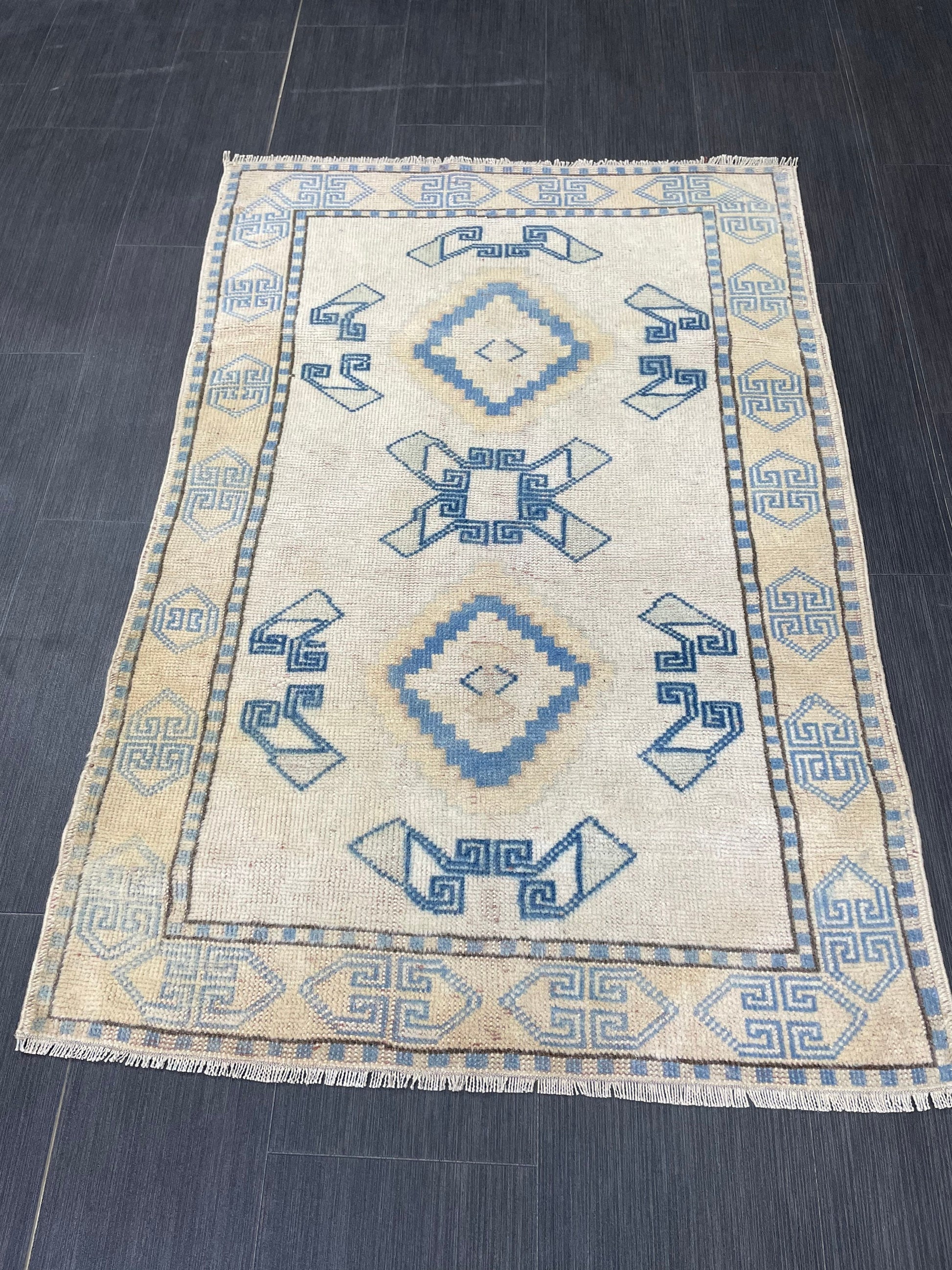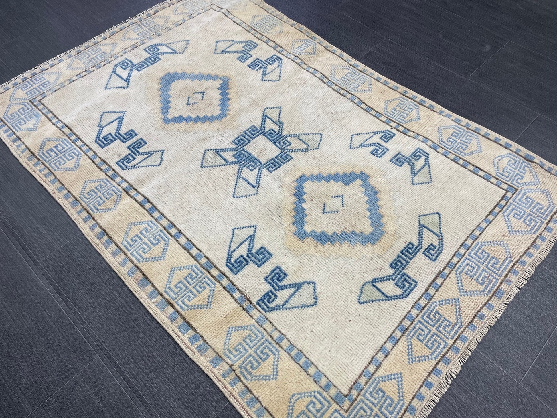 Oriental Wool RUG TURKISH Rug 3 x 4.4 ft Vintage Oushak Rug Vintage Persian Rug Wool Oushak Rug Handmade Vintage Turkish Rug