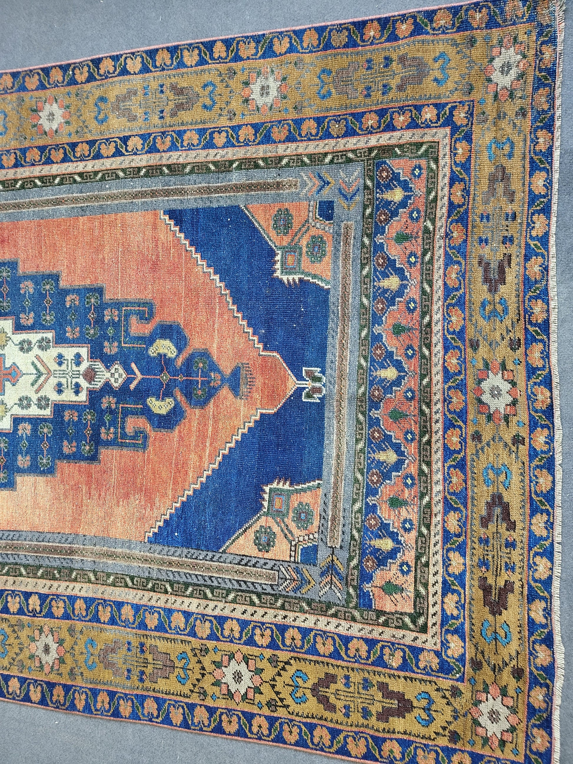 *A vintage handmade Turkish rug made of hand spun wool and double knotted on sturdy foundation,