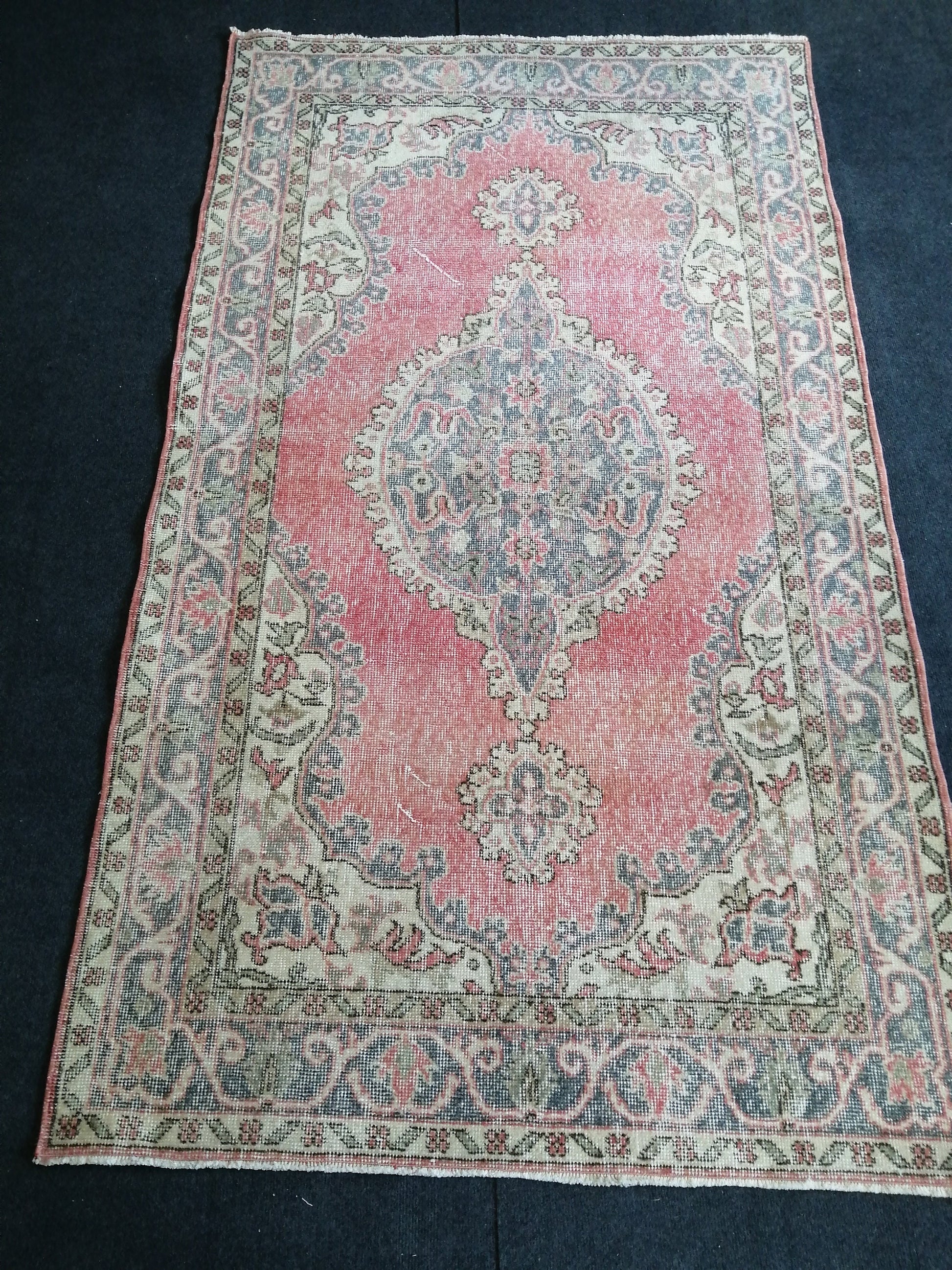*A vintage handmade Turkish rug made of hand spun wool and double knotted on sturdy foundation,