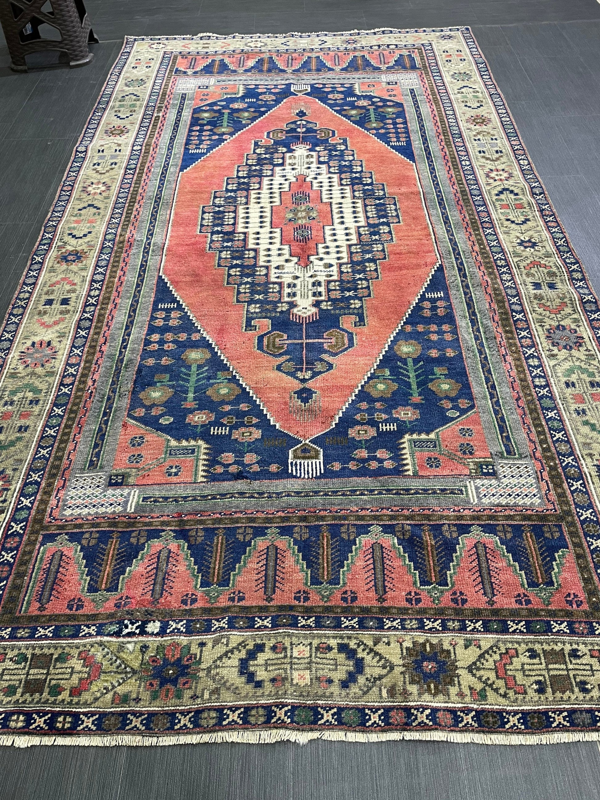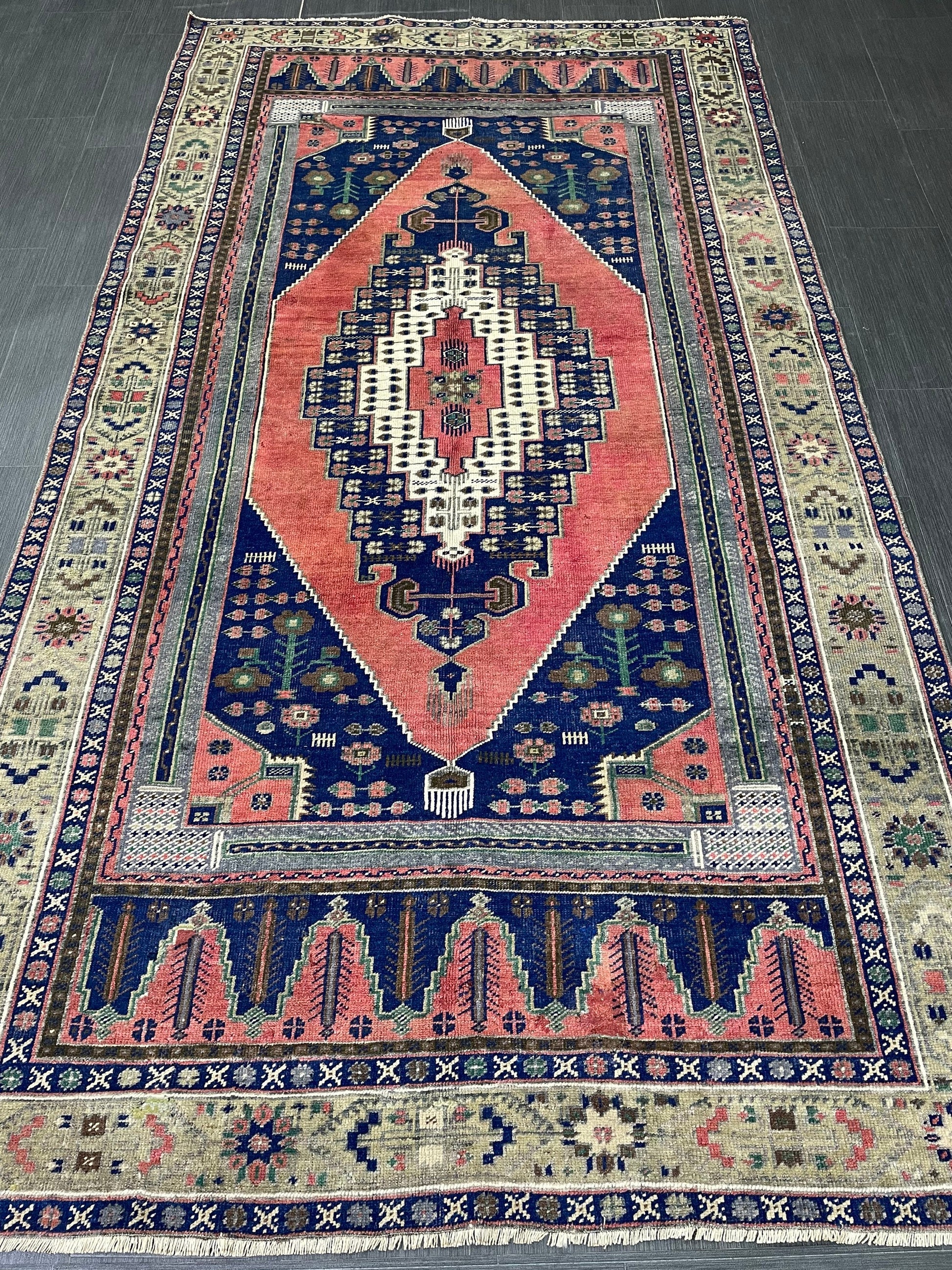 *A vintage handmade Turkish rug made of hand spun wool and double knotted on sturdy foundation,