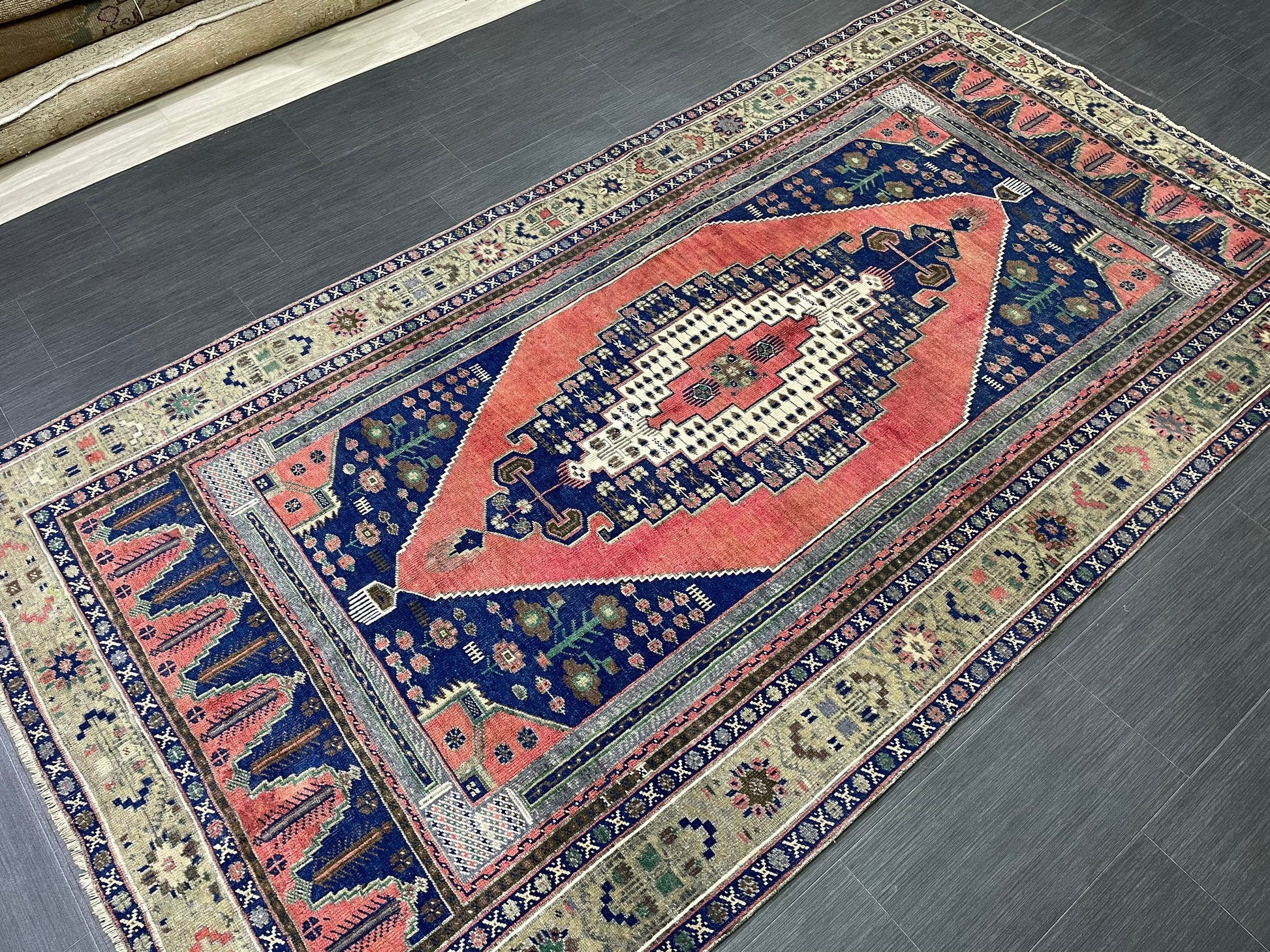 OUSHAK RUG TURKISH Vintage 4.9 x 9 Rug Vintage Oriental Rug Vintage Rug Wool Hand Knotted 5x9 Rug Hand Made Rugs Vintage Turkish Rug