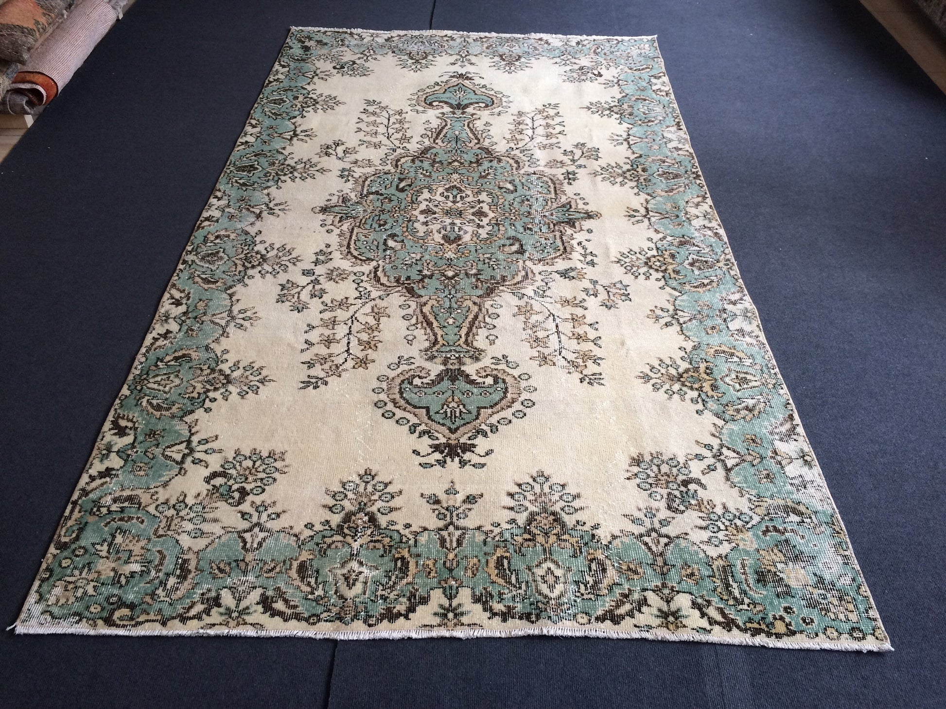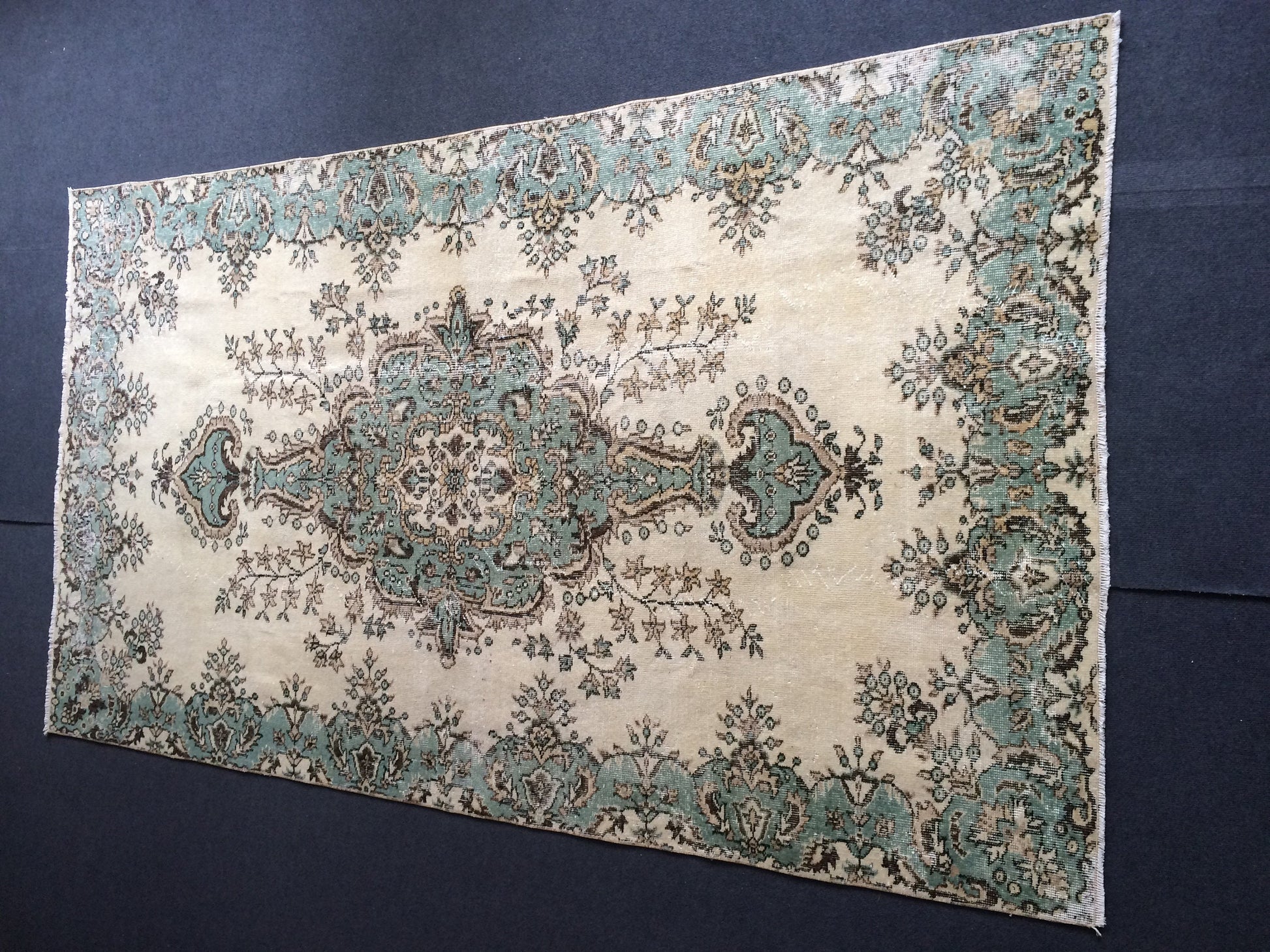 Oushak Rug, Vintage Rug Turkish Rug, Boho Rug, Living Room Rug, Green Rug Oushak Rug,Hand woven Rug,Weaving Rug,