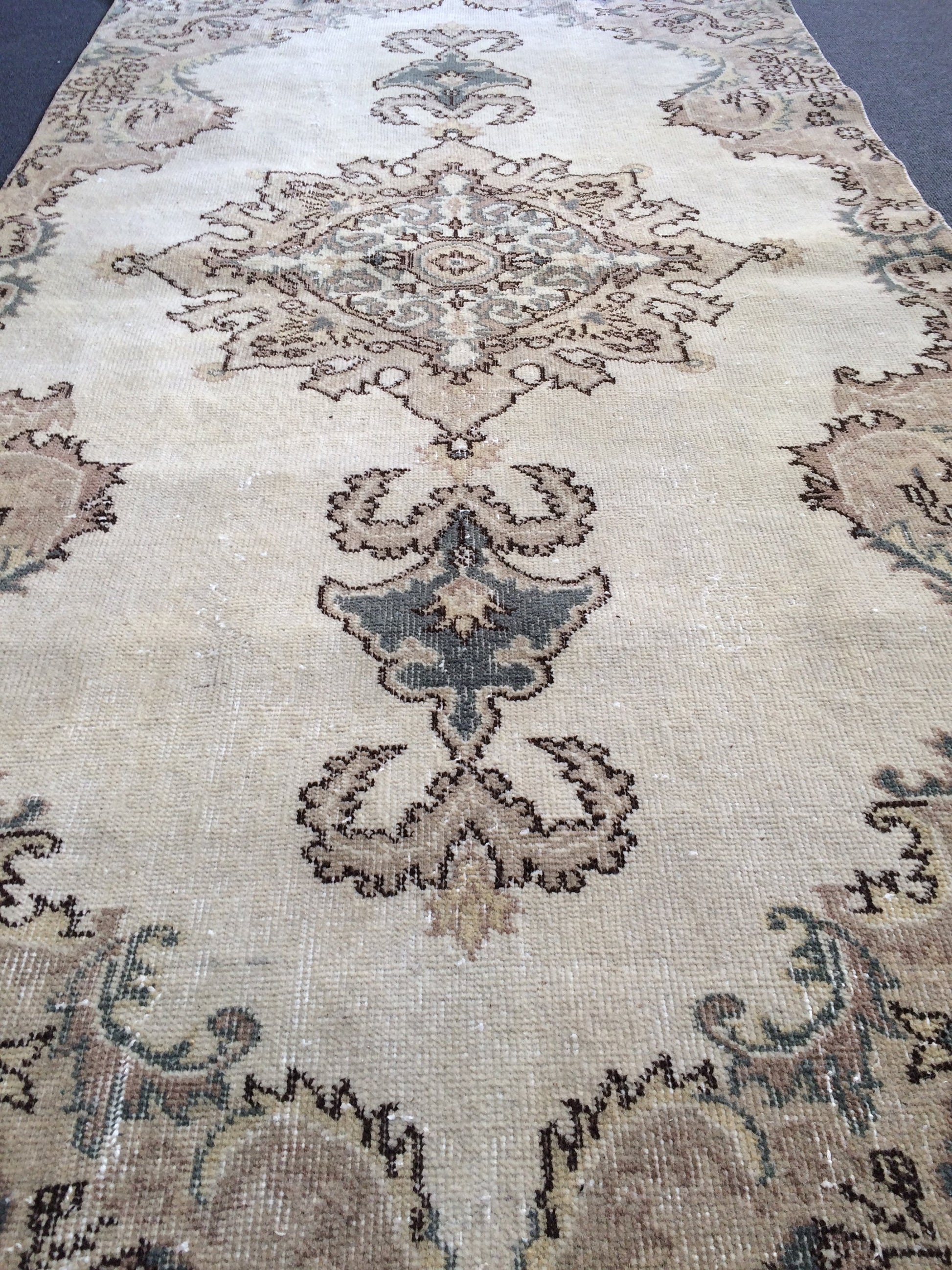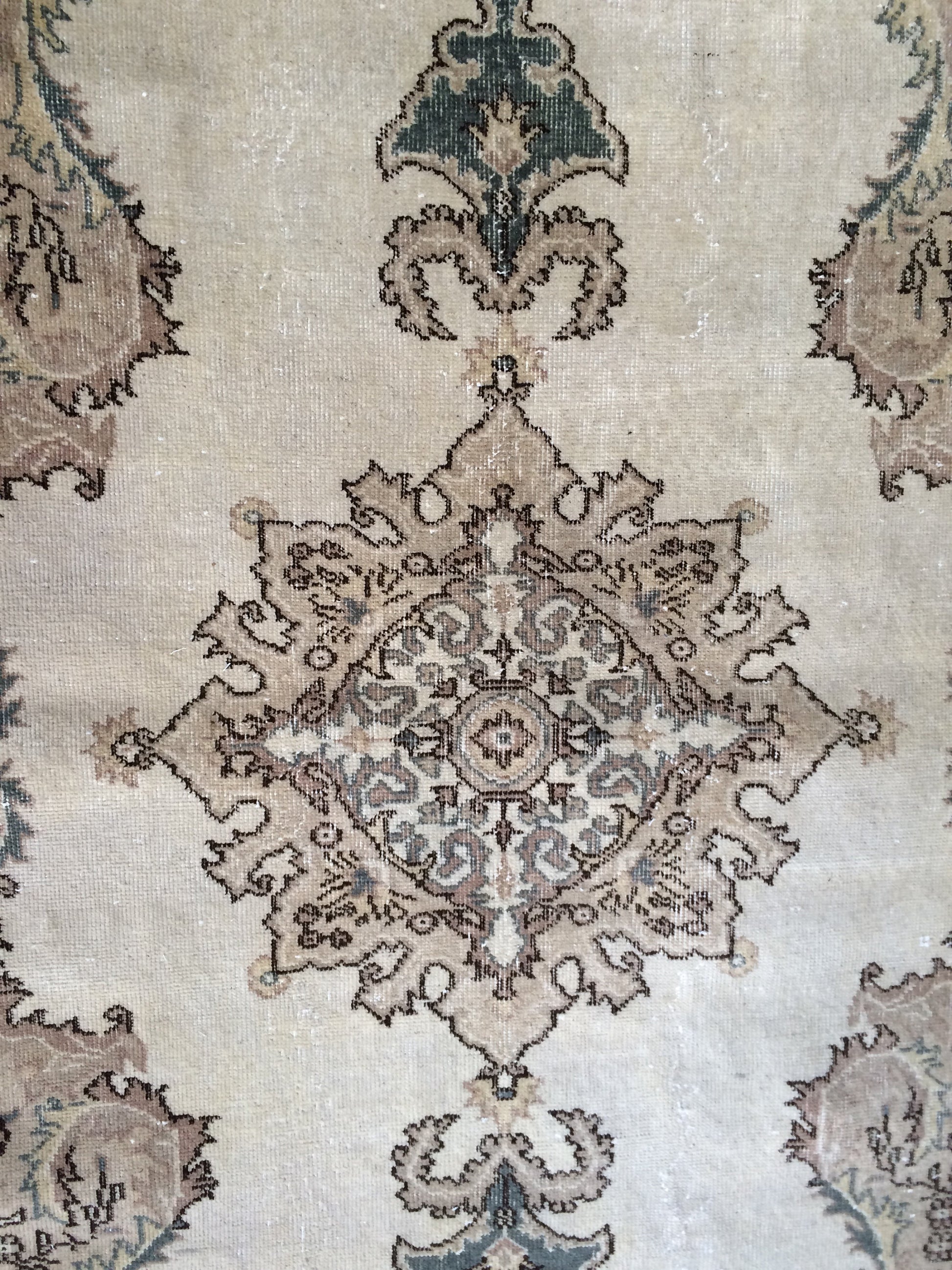 *A vintage handmade Turkish rug made of hand spun wool and double knotted on sturdy cotton foundation,
