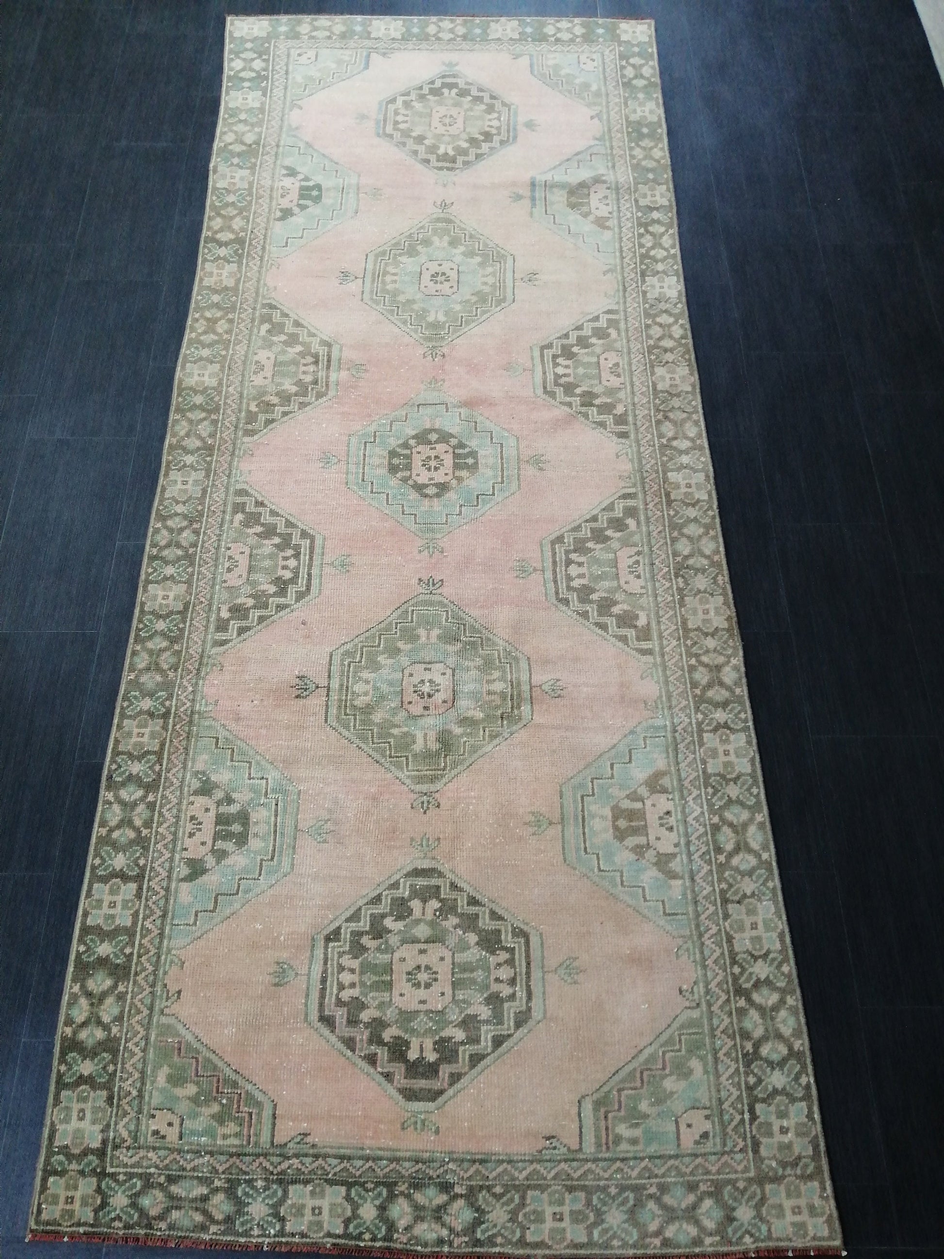 Oushak Runner Rug 10.4 x 4 Vintage Runner Rug Hallway Runner Rug Kitchen Runner Rug Wool Runner Rug Wool Oushak Rug
