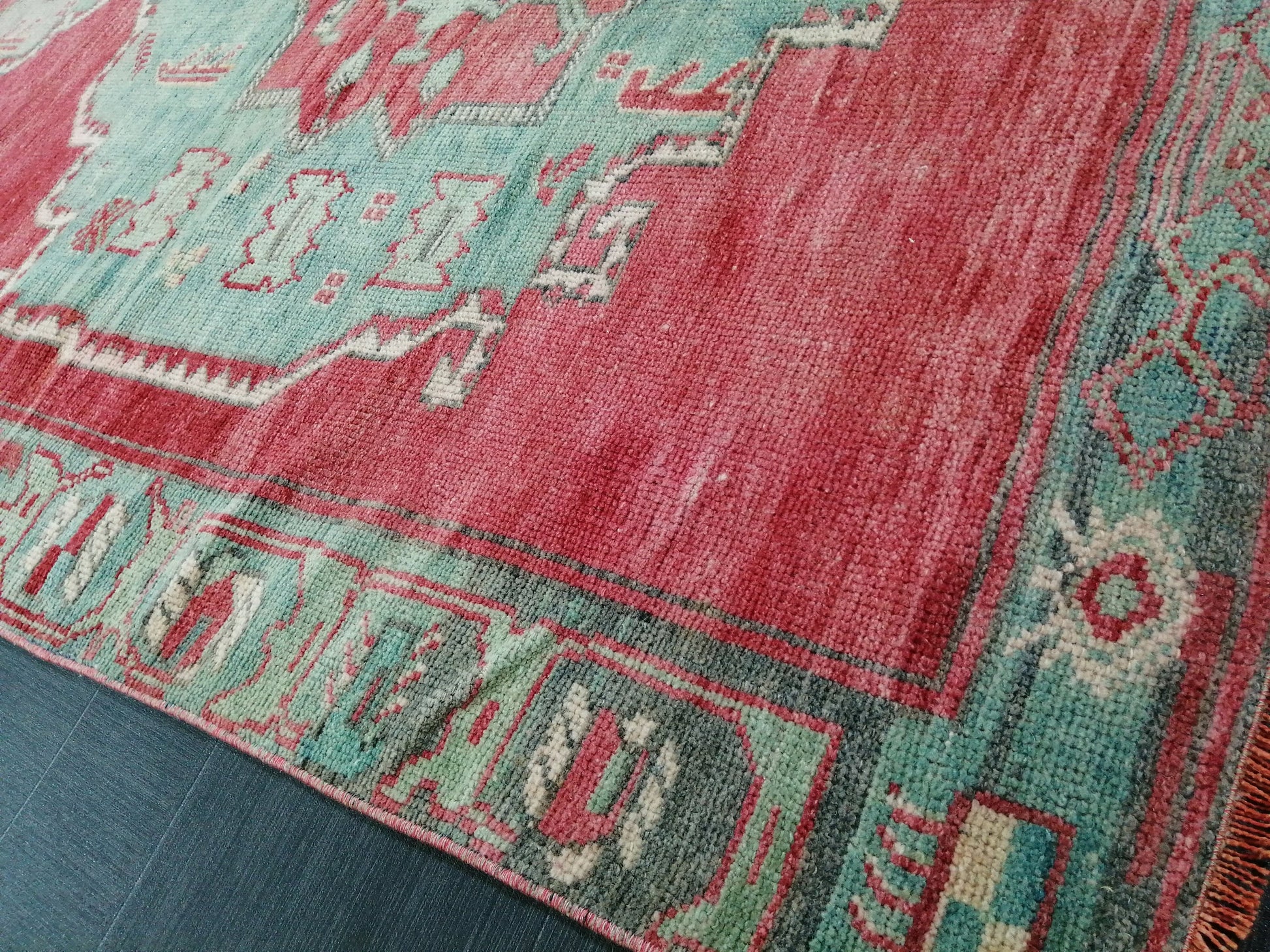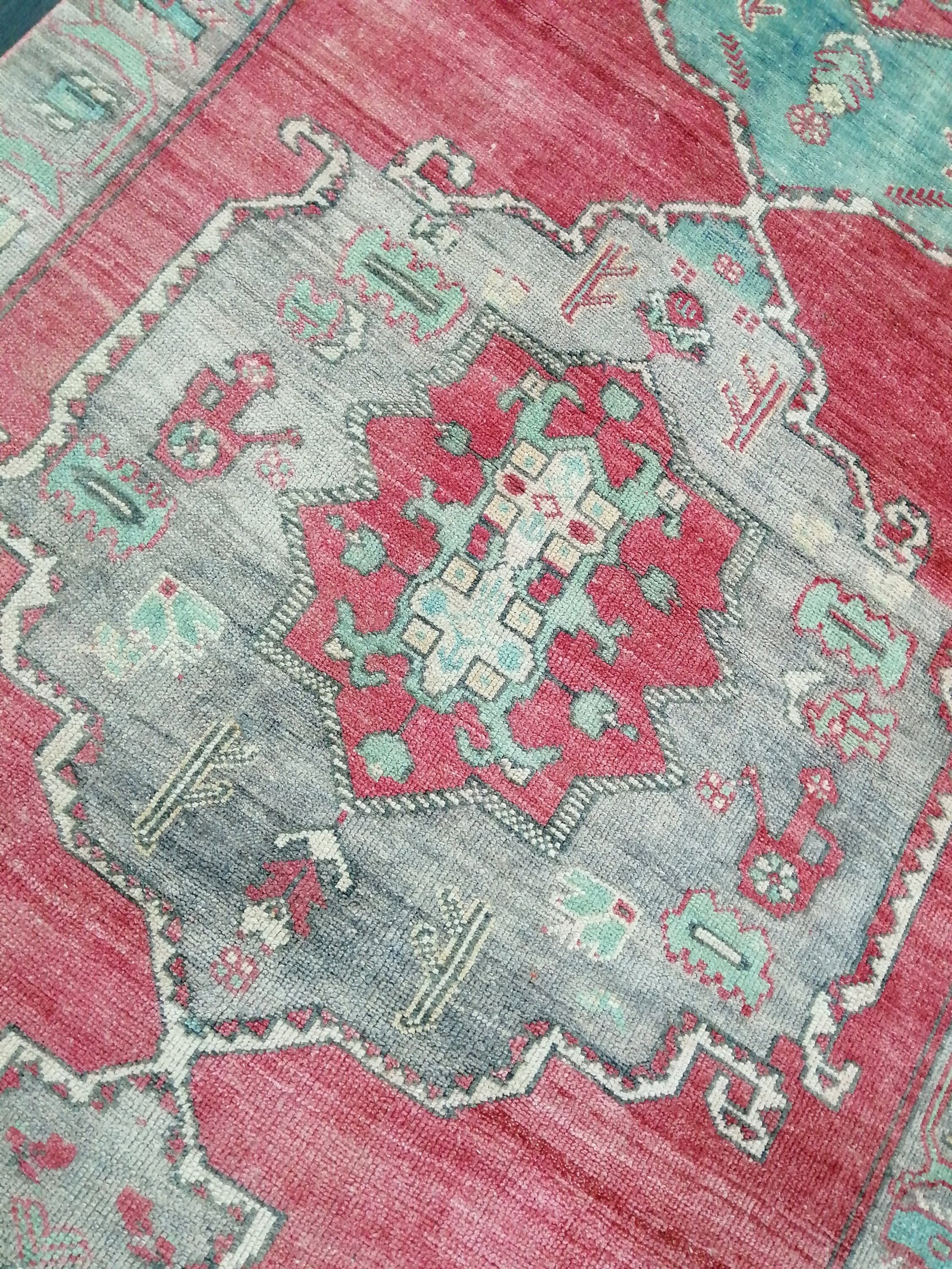 *A vintage handmade Turkish rug made of hand spun wool and double knotted on sturdy foundation,