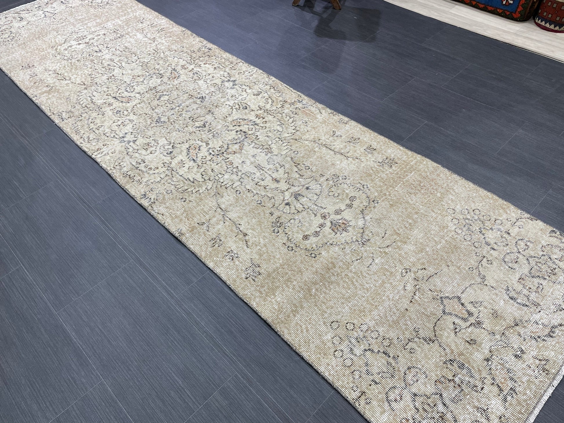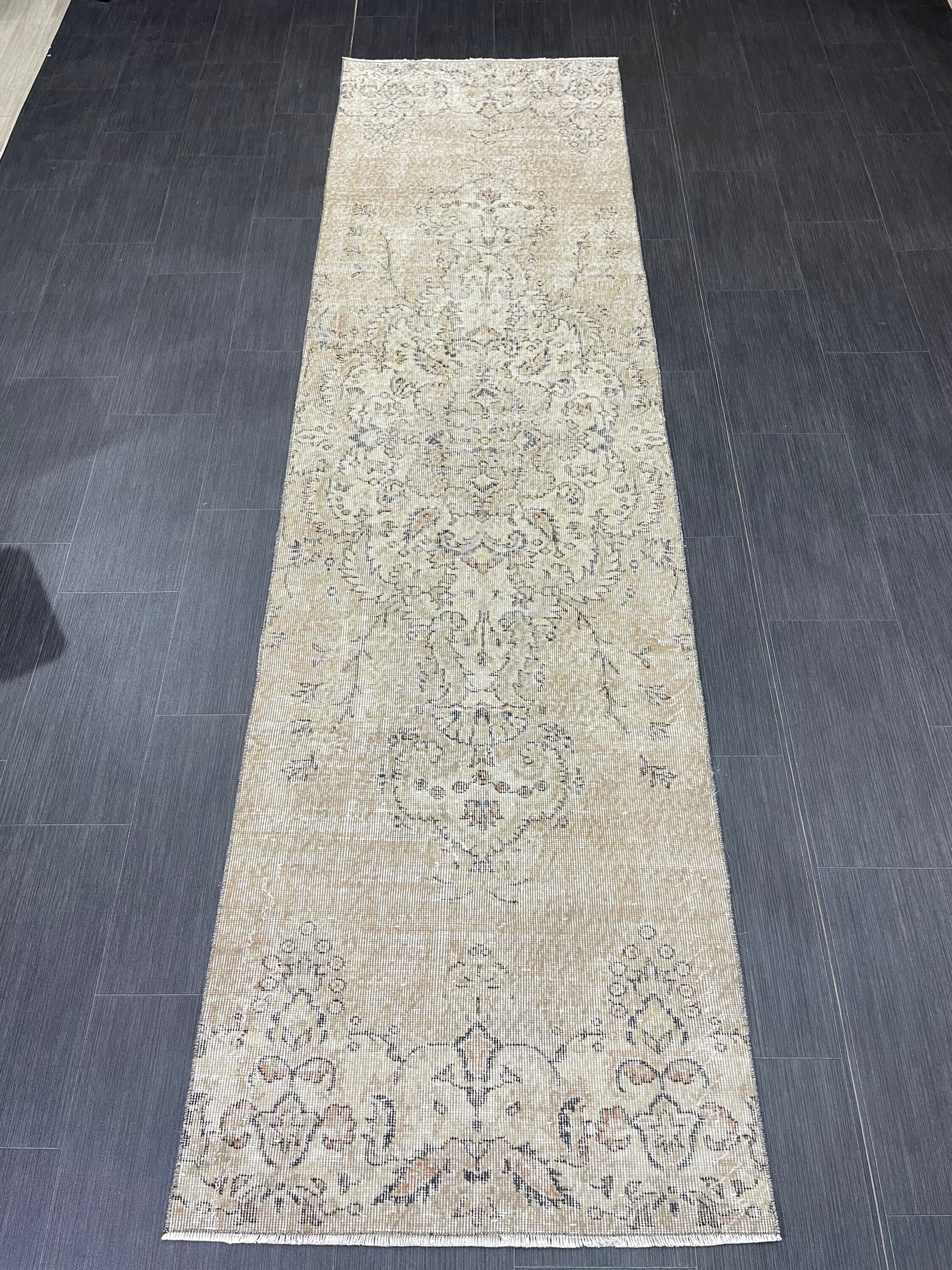 Oushak Runner Rug 2.7 x 10.2 Muted Turkish Runner Rug Vintage Neutral Runner Rug Hallway Natural Runner Rug Kitchen Runner Rug Wool Runner