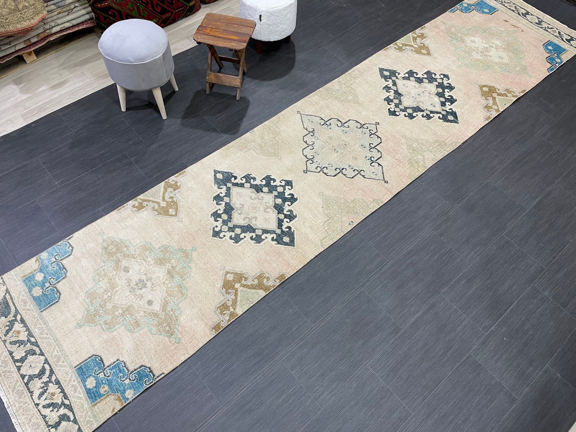 Oushak Runner Rug Turkish 2.7 x 13 Runner Rug Vintage Runner Rug Hallway Runner Rug Kitchen Runner Rug Wool Runner Rug Handmade Rug