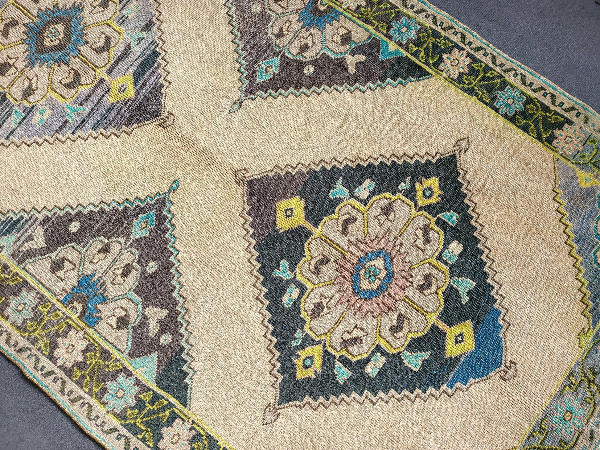 *A vintage handmade Turkish rug made of hand spun wool and double knotted on sturdy cotton foundation,
