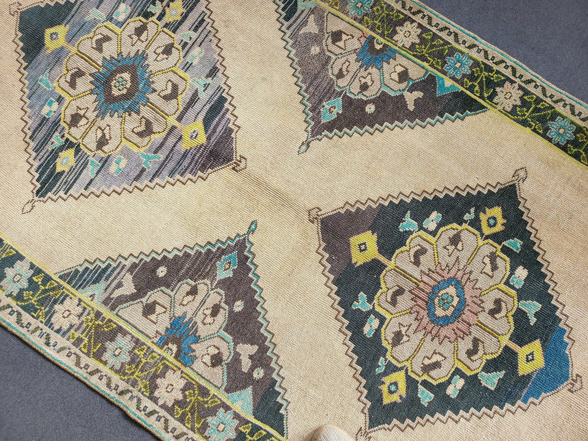 * THIS HANDMADE RUNNER RUG IS A PIECE OF ART FROM CENTRAL ANATOLIA WITH TRADITIONAL PATTERN, HAND SPUN WOOL ,