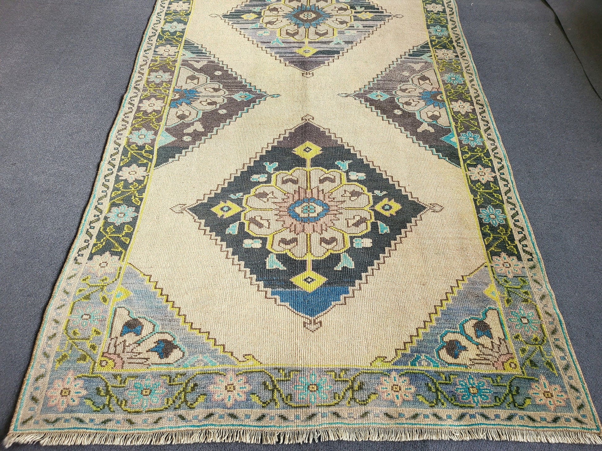 Oushak Runner Rug, Turkish 4.2 x 10.3 Runner Rug, Vintage Runner Rug, Persian Hallway Runner Rug, Handmade Runner Rug Wool Anatolian Runner