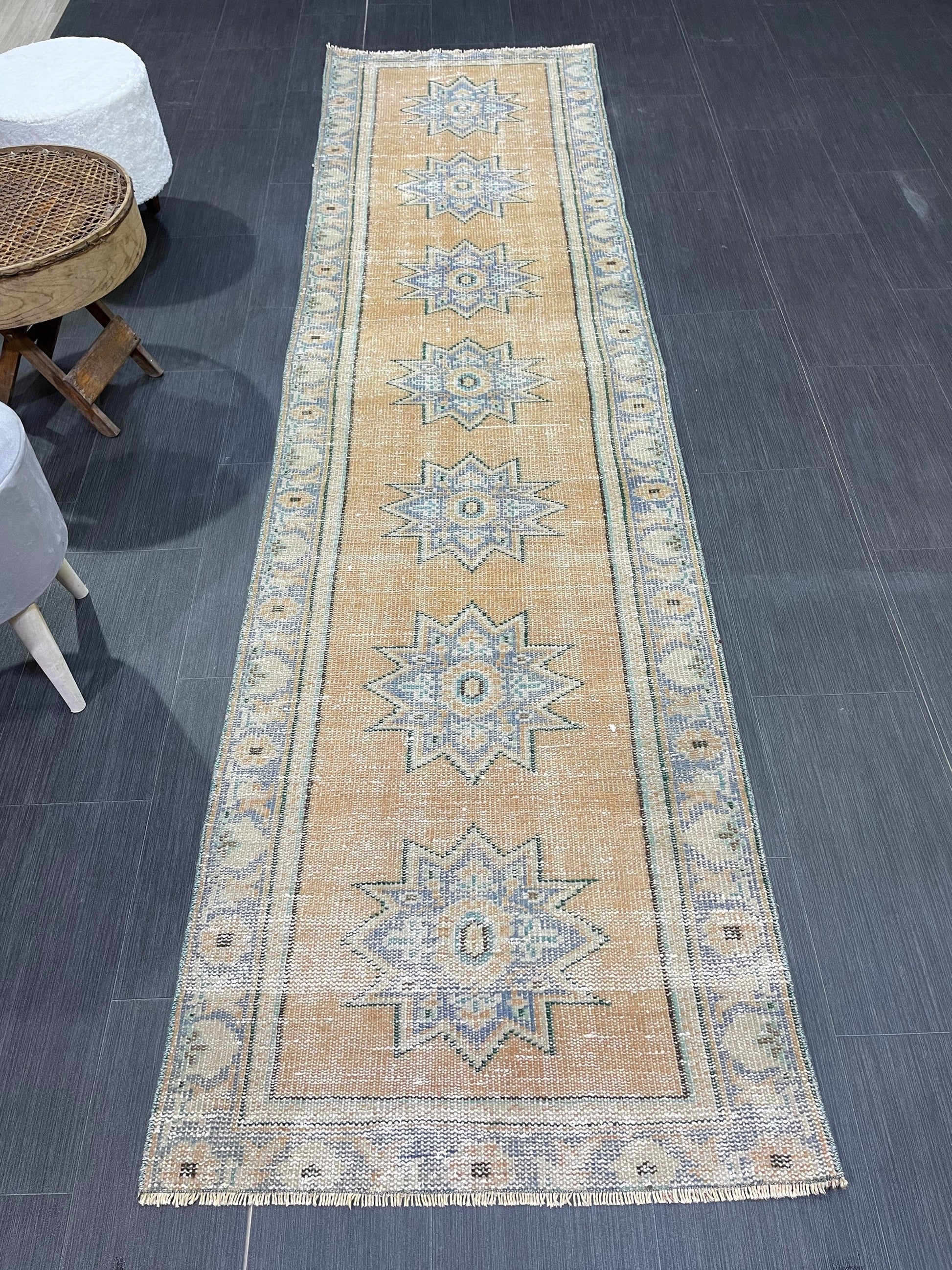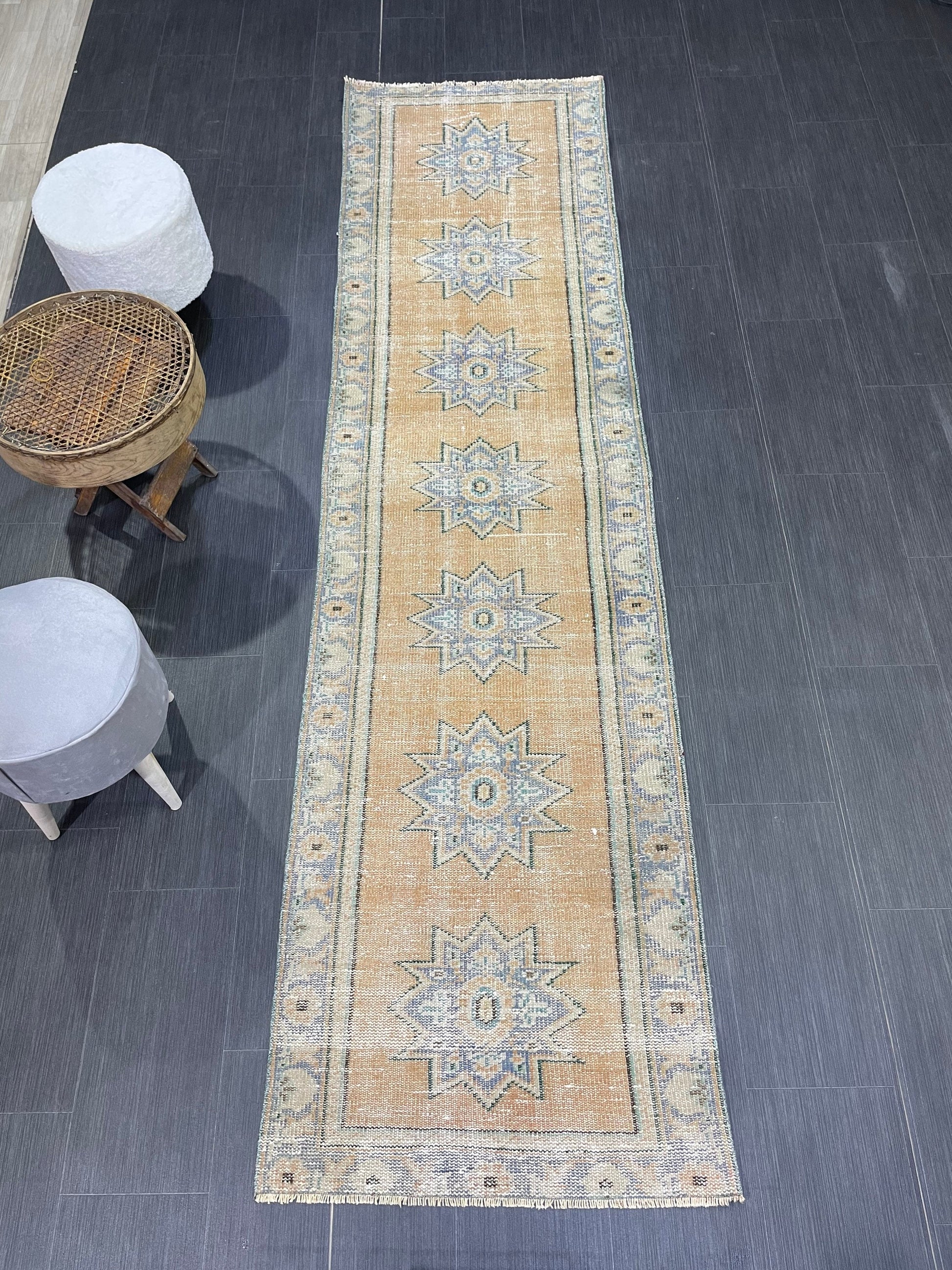 Oushak Runner Rug, Turkish Runner Rug, Vintage 2.5 x 9.7 Runner Rug, Hallway Runner Rug, Kitchen Runner Rug Wool Runner Rug