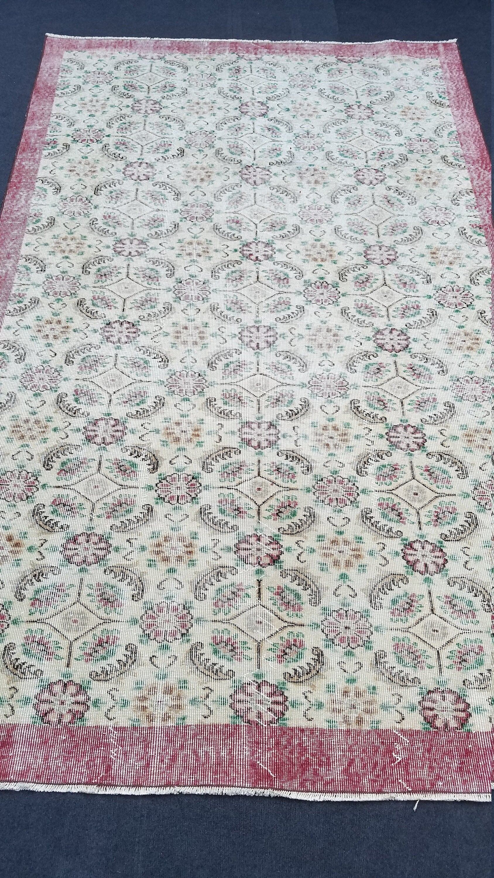 Oushak turkish rug, vintage rug, vintage oushak rug, vintage anatolian rug,kitchen runner rug unique hand made rug,bohemian rug 9'x5'6