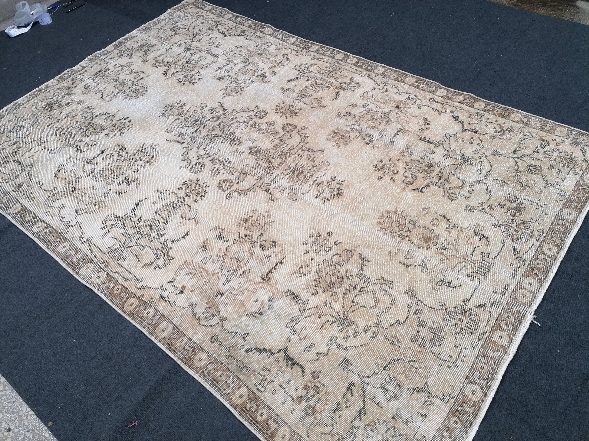 Oushak turkish rug, vintage turkish rug,oushak vintage rug,vintage rug,kitchen rug, vintage anatolian rug,unique hand made bohemian 9'9x6'9