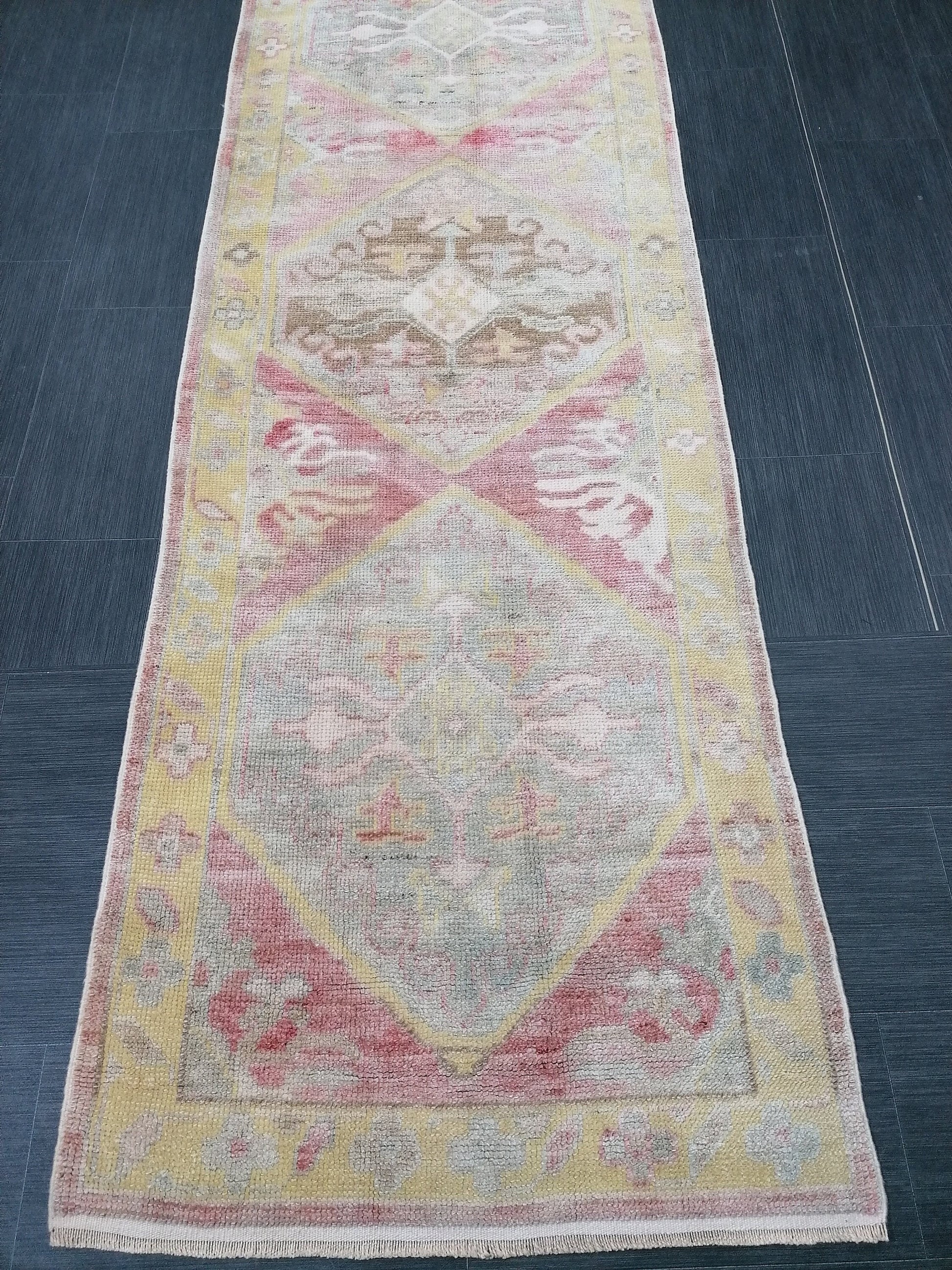 Oushak turkish runner rug 3x14'5 oushak new production wool runner rug pastel hallway runner rug handmade runner