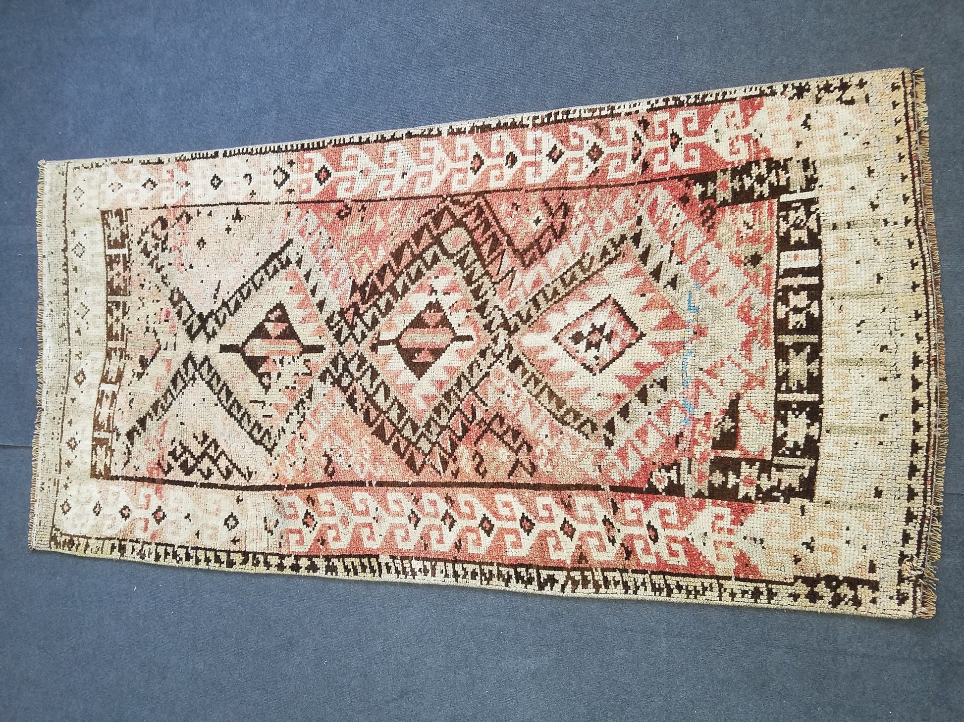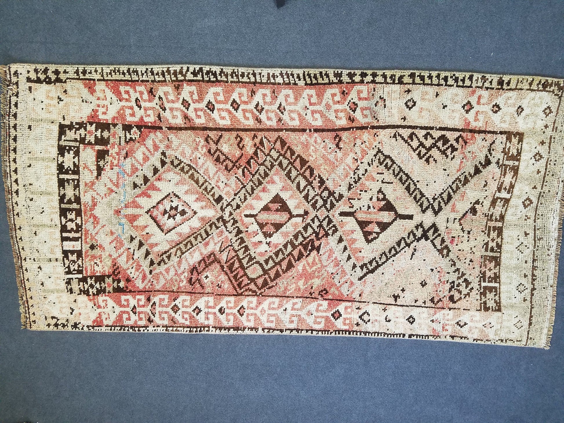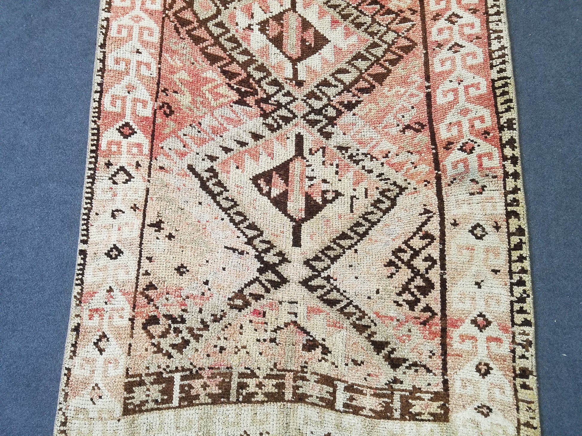Oushak wool rug,turkish hallway runner rug, pastel oushak vintage runner 3'7x7'4 unique hand made rug kitchen rug bohemian rug