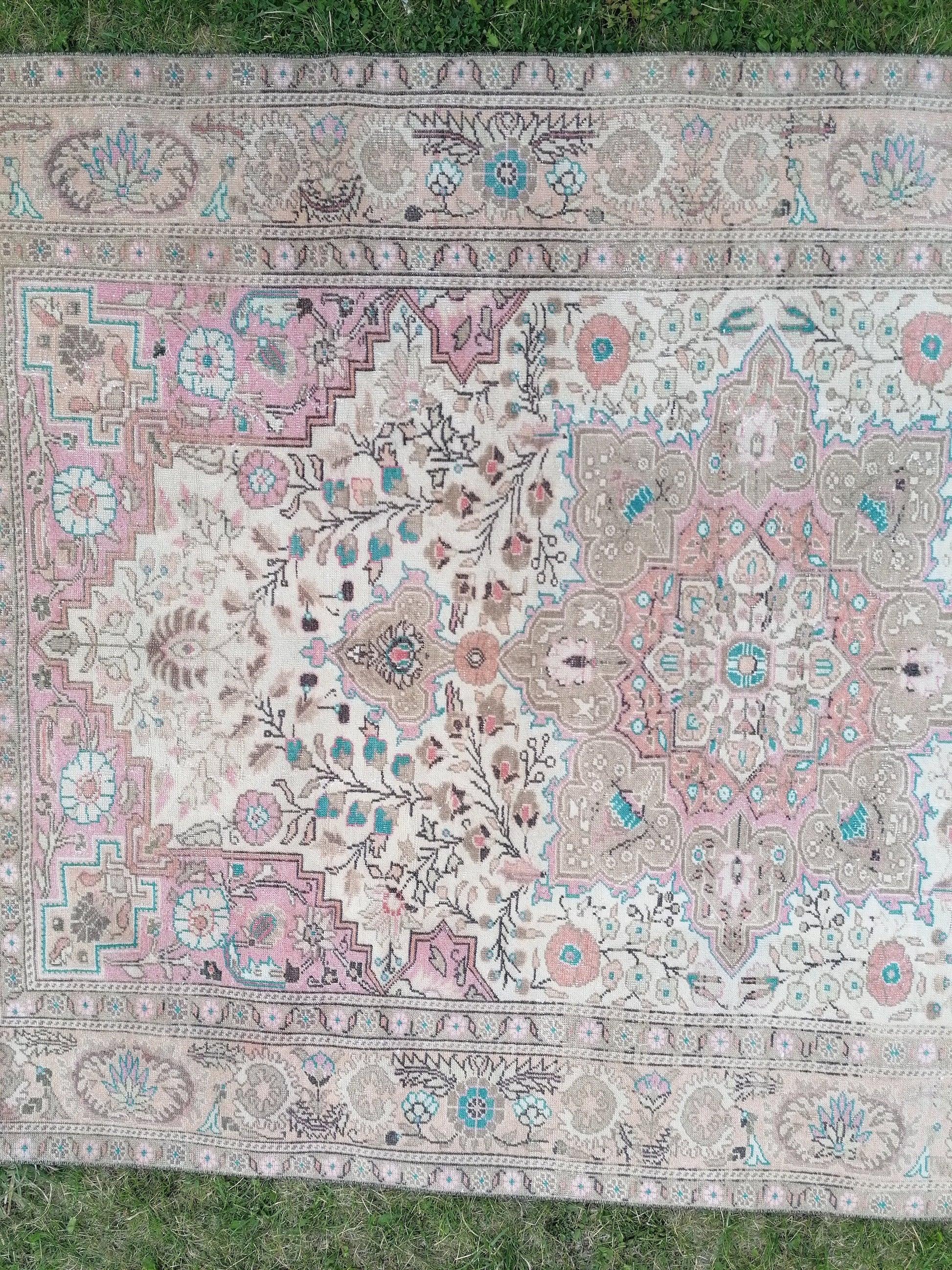 Oushak wool rug, vintage rug 4'7x7'6 kitchen rug, living room rug, handmade wool rugs
