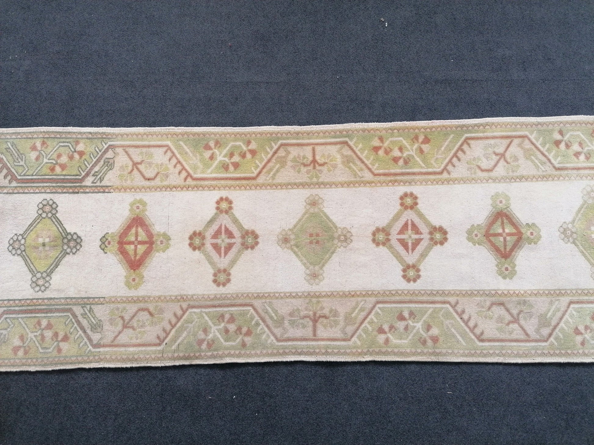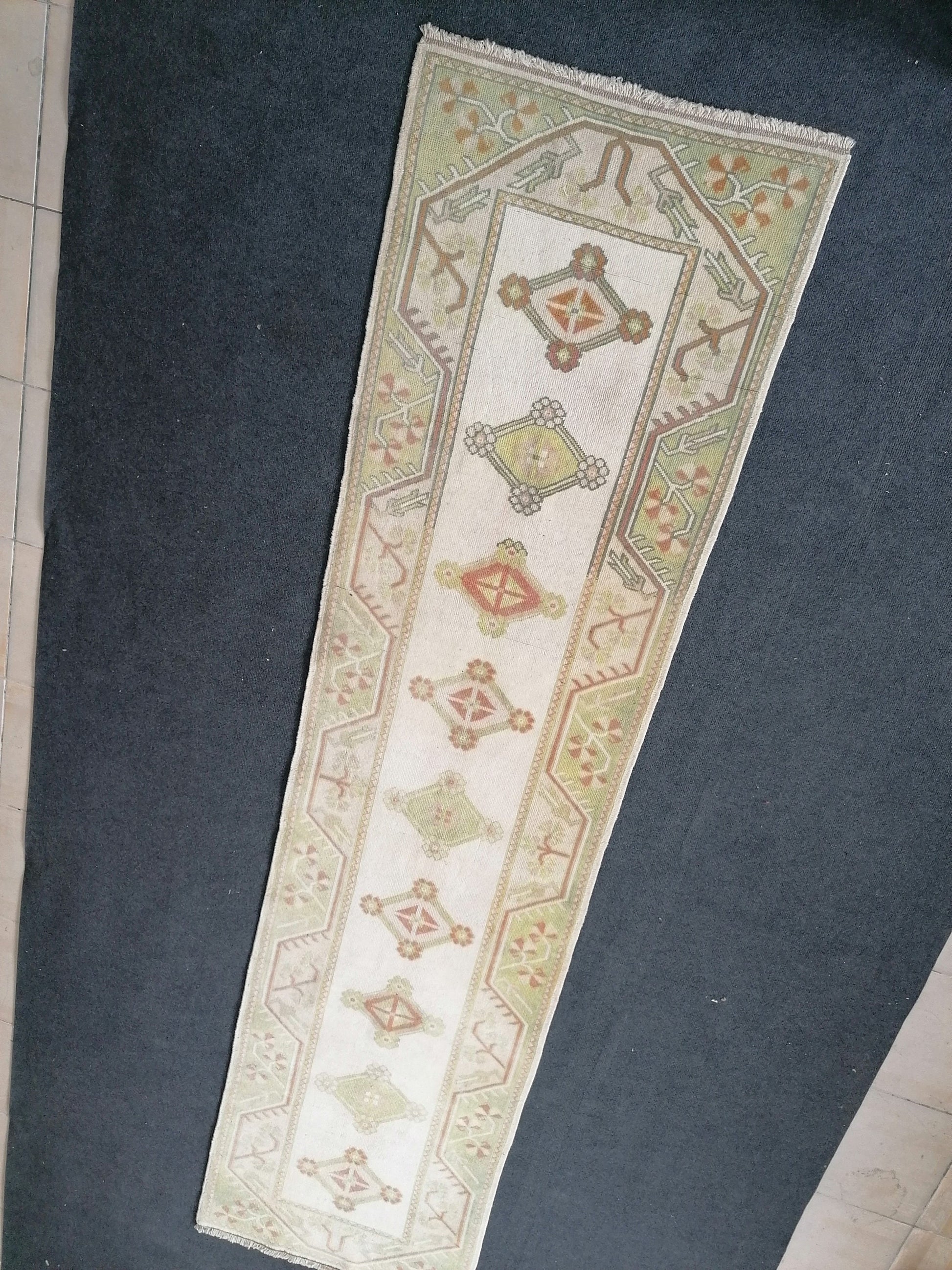 Pastel green runner rug, 2'5x9'5 faded runner rug, turkish runner rug, vintage runner rug, hallway runner rug, kitchen runner