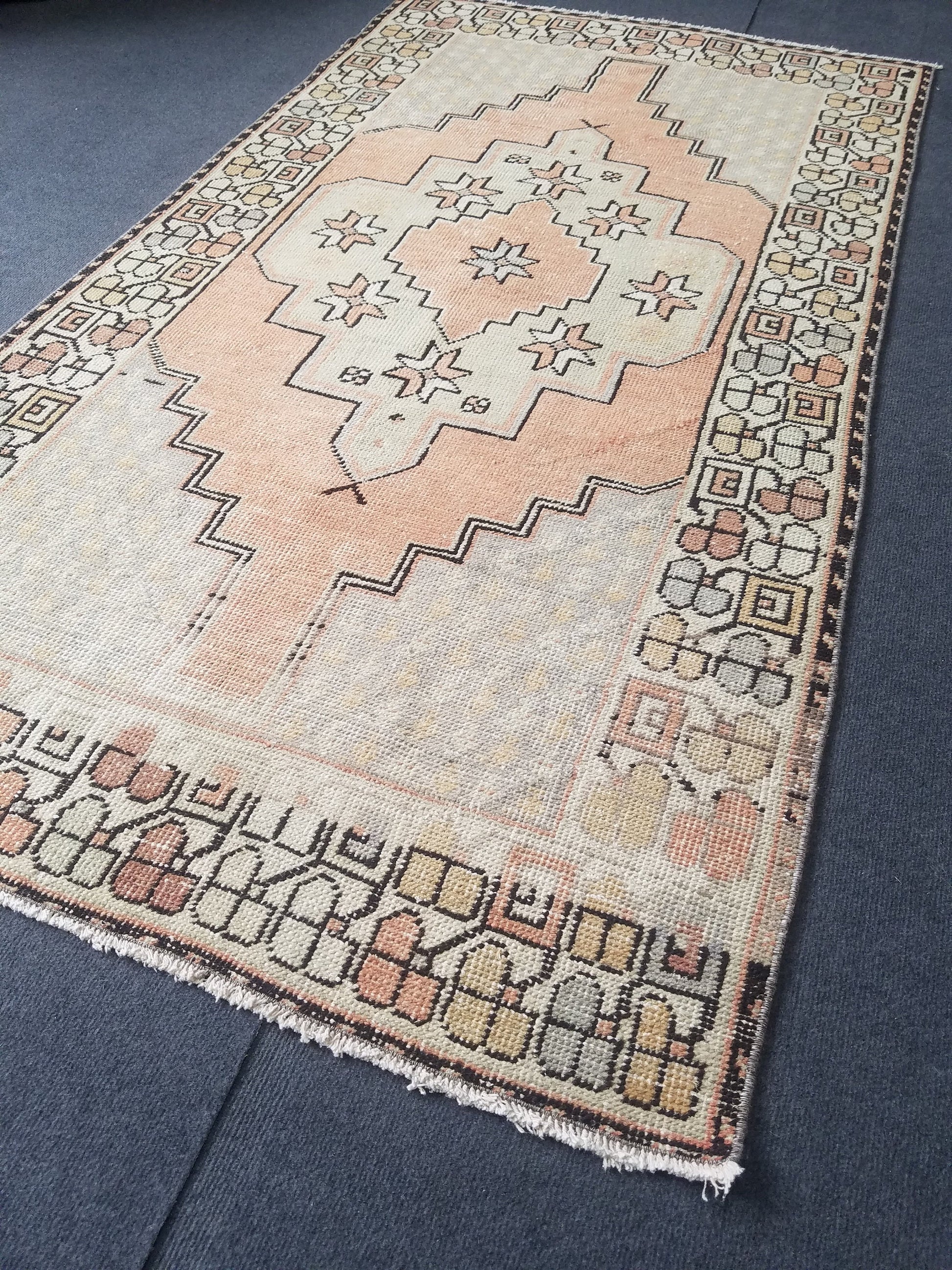 Pastel turkish rug, vintage area rug, oushak rug, wool rug, handmade rug 6'6*3'6 feet