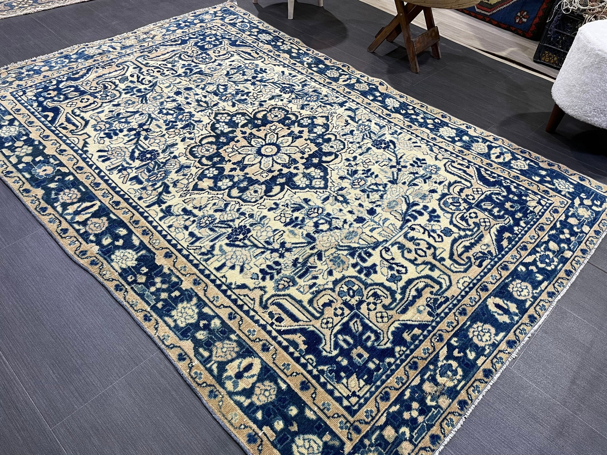 Persian Rug, Vintage 4.5 x 6.5 Rug, Navy Hand Knotted Rug, HANDMADE Rug, Vintage Turkish Rug, Oushak Rug, Oriental Rug, Wool Rug