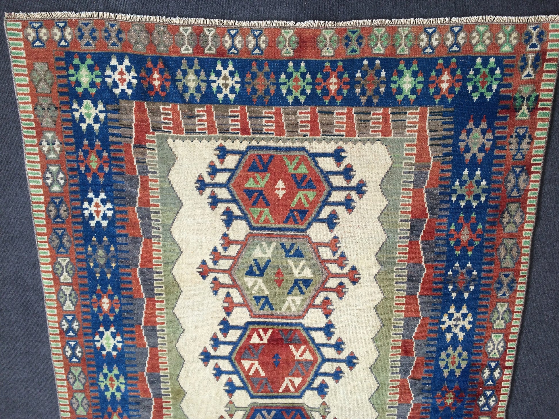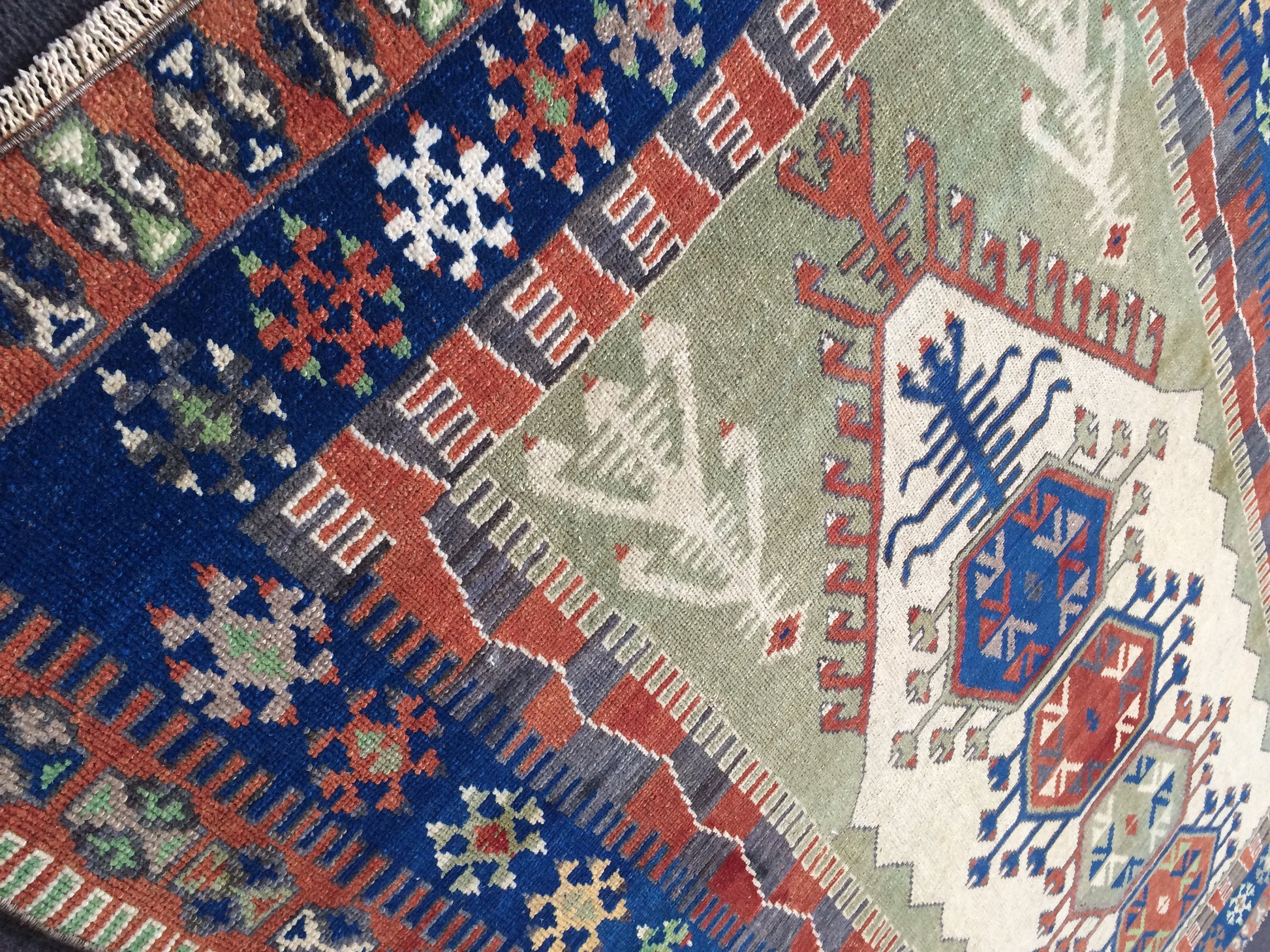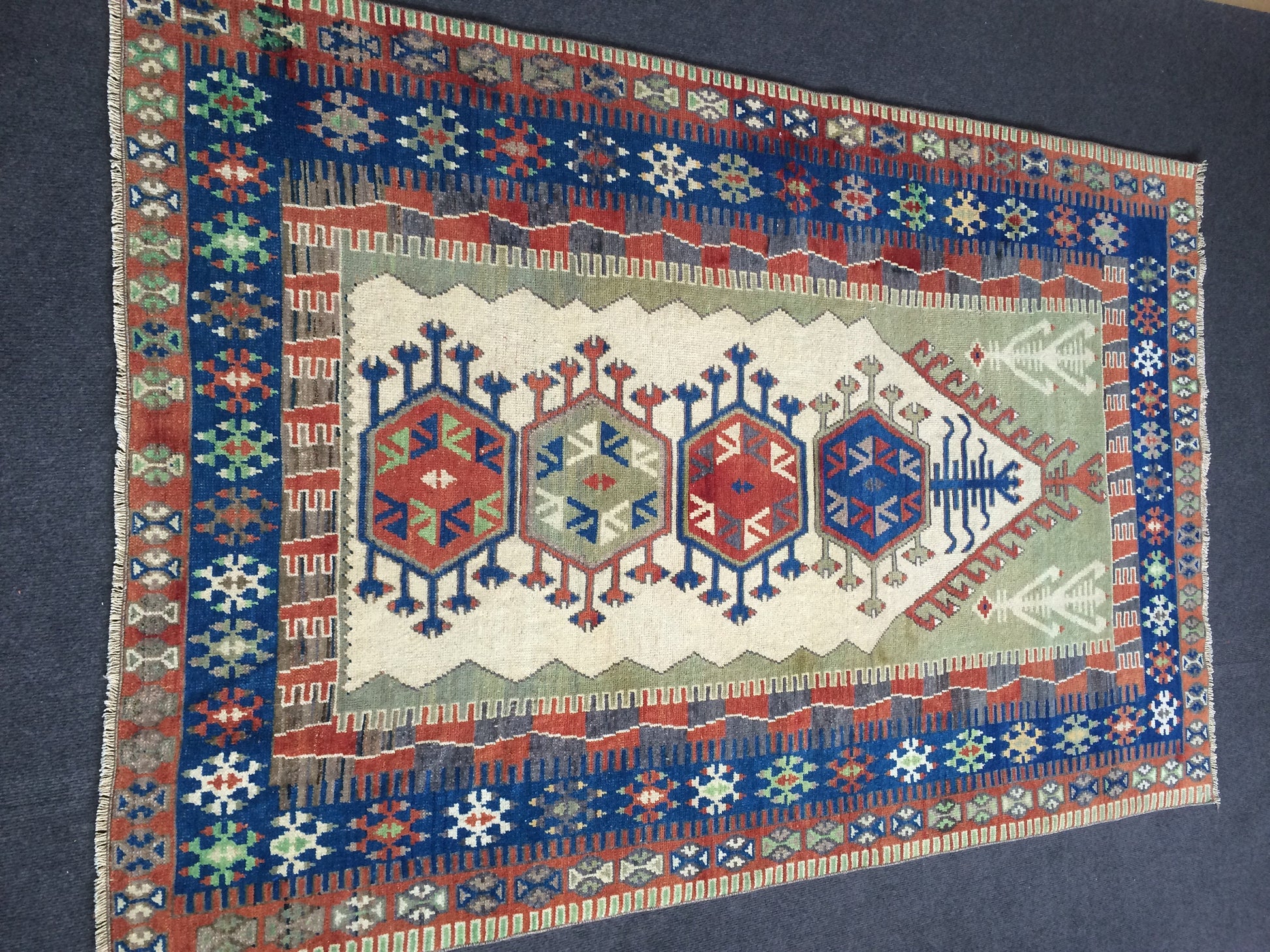 *A vintage handmade Turkish rug made of hand spun wool and double knotted on sturdy cotton foundation,