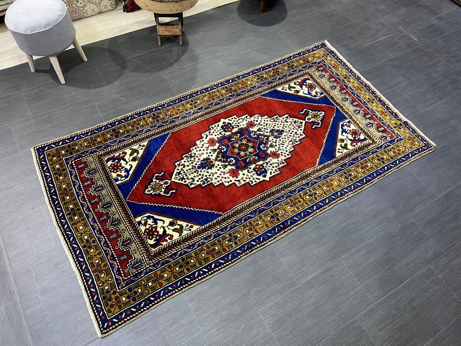 Persian RUG Vintage TURKISH 4x7 Rug Plush Vintage Rug Wool Oushak Rug Handmade Rug Hand Knotted Rug Natural Wool Rug