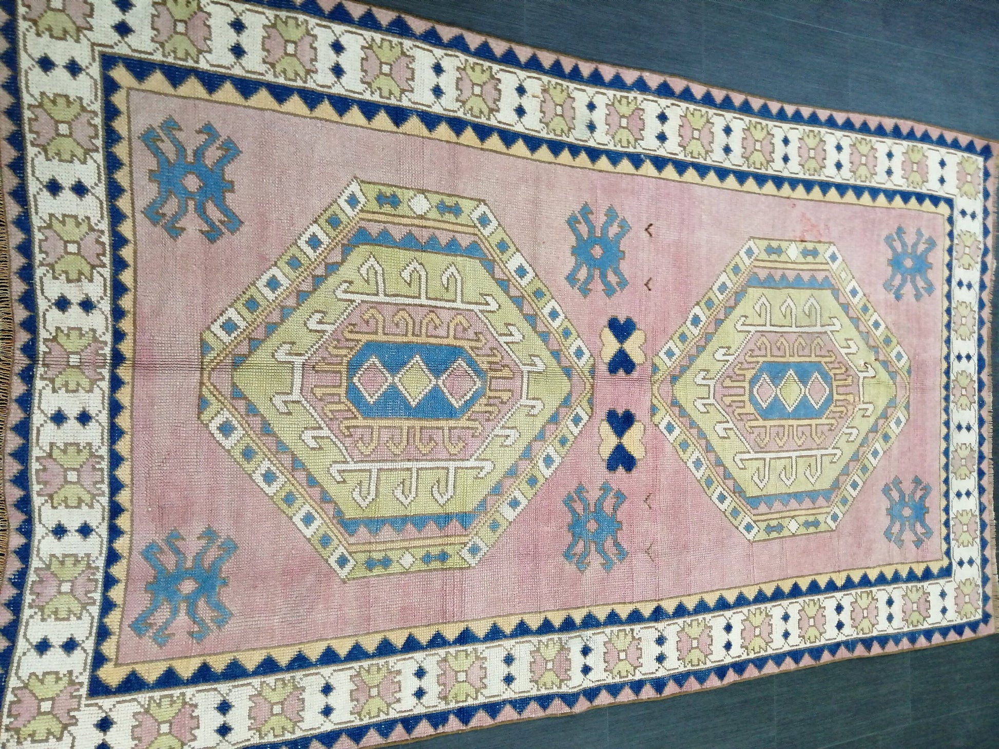 *A vintage handmade Turkish rug made of hand spun wool and double knotted on sturdy foundation,