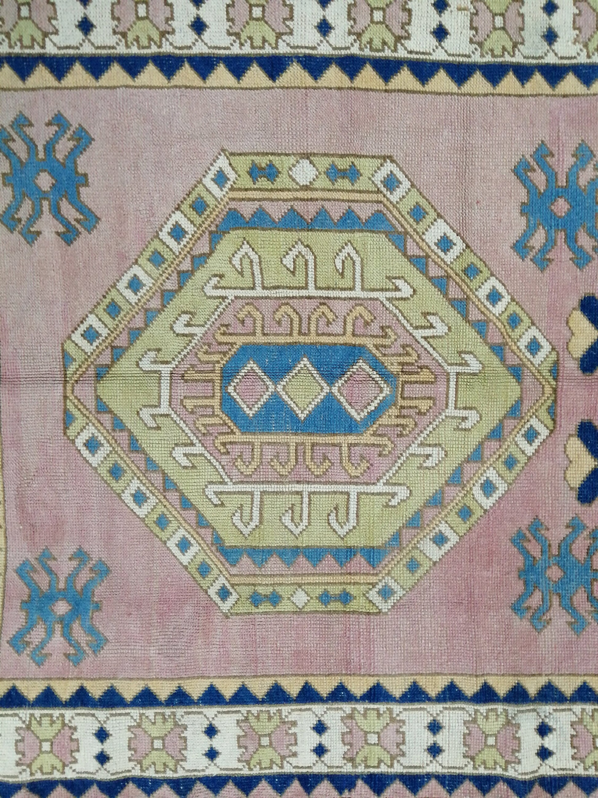 Pink and Blue Vintage RUG 9 x 6 TURKISH Rug Vintage Oushak Rug Vintage Rug Wool Oushak Rug Hand Made Rugs Vintage Turkish Rug