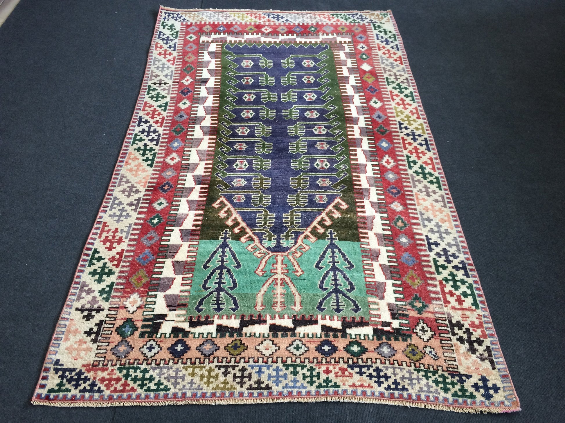 *A vintage handmade Turkish rug made of hand spun wool and double knotted on sturdy cotton foundation,