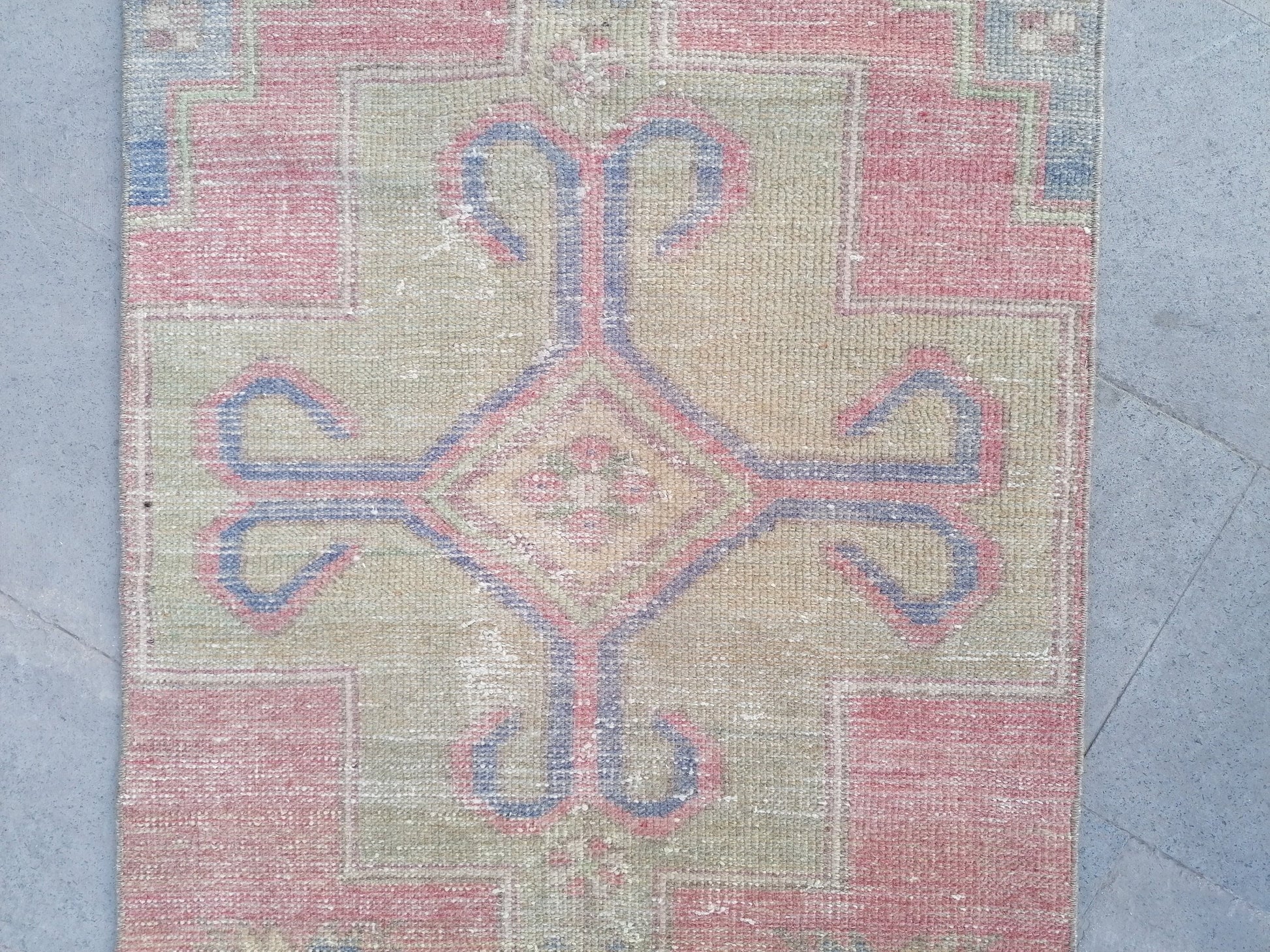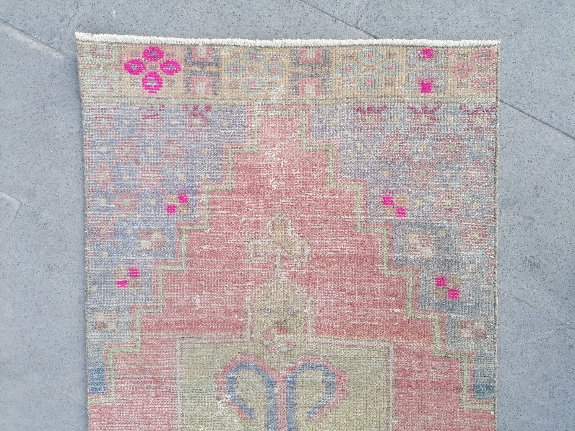Runner rug 2'7x8'3 distressed vintage runner , rustic hand made wool runner