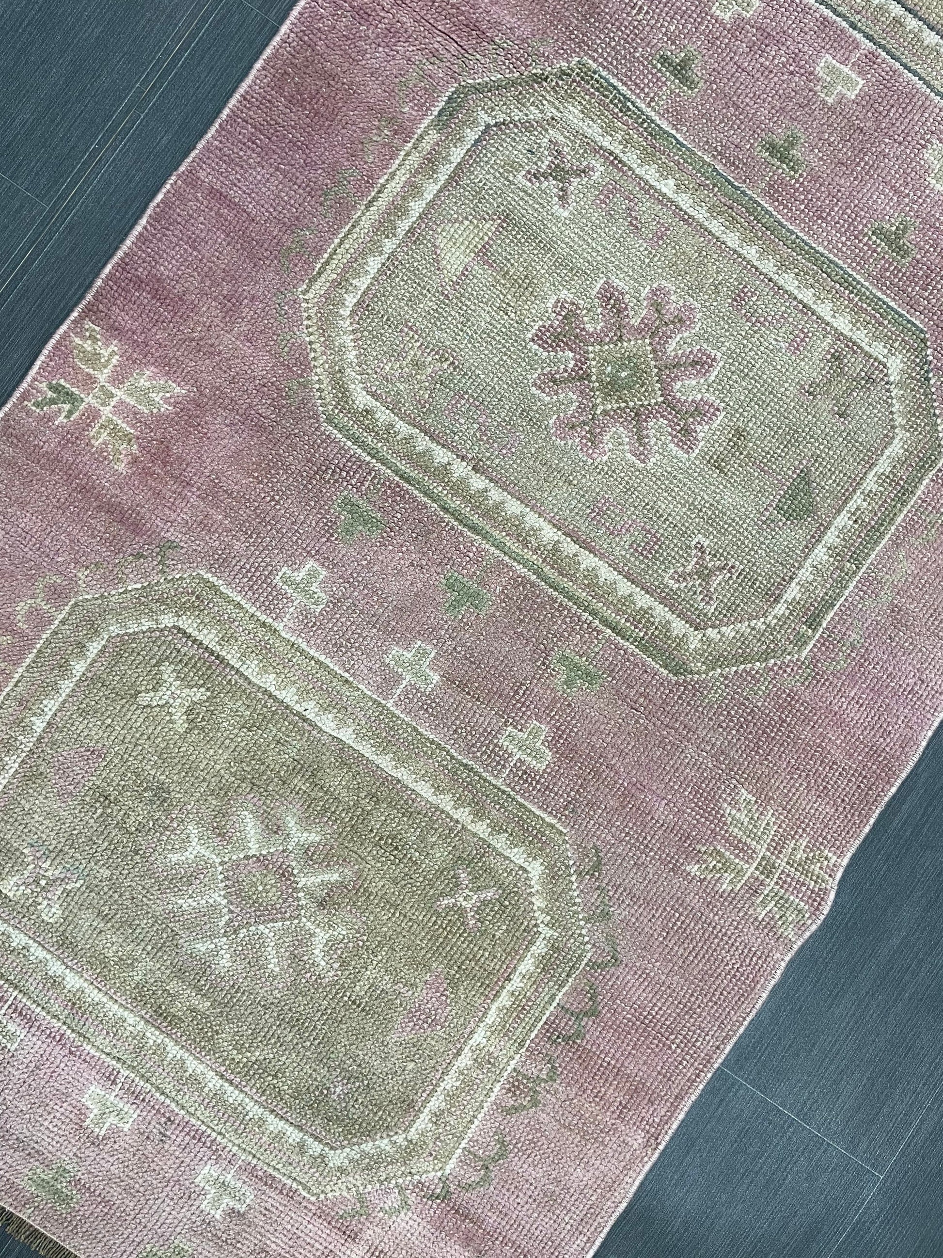 Short Oushak Runner Rug 3 x 7.5 Turkish Runner Rug Vintage Runner Rug Hallway Runner Rug Kitchen Runner Rug Wool Runner Rug Wool Oushak Rug