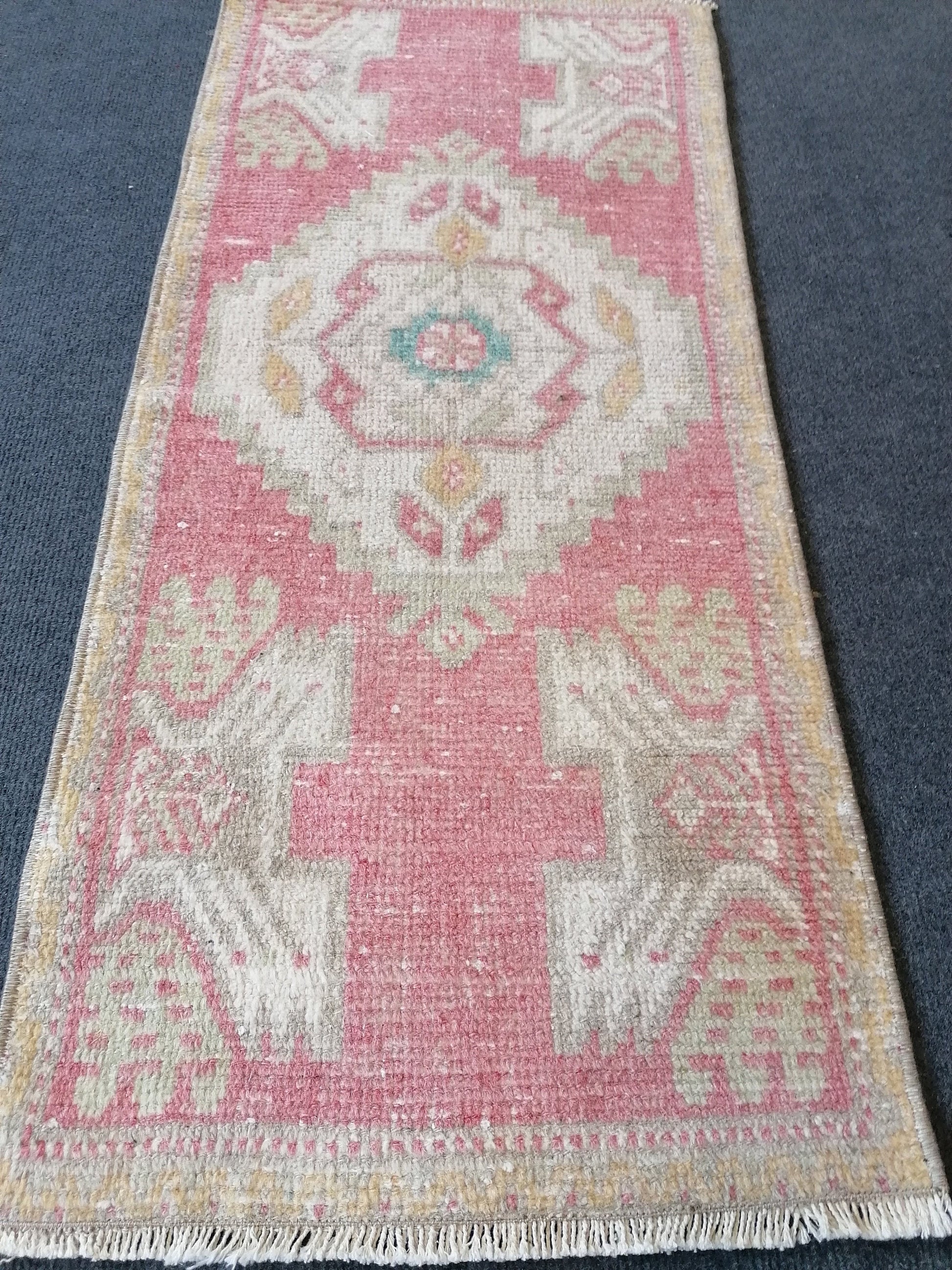 Small hand made rug, woll rug, turkısh rug, vıntage rug 3'6x1'6