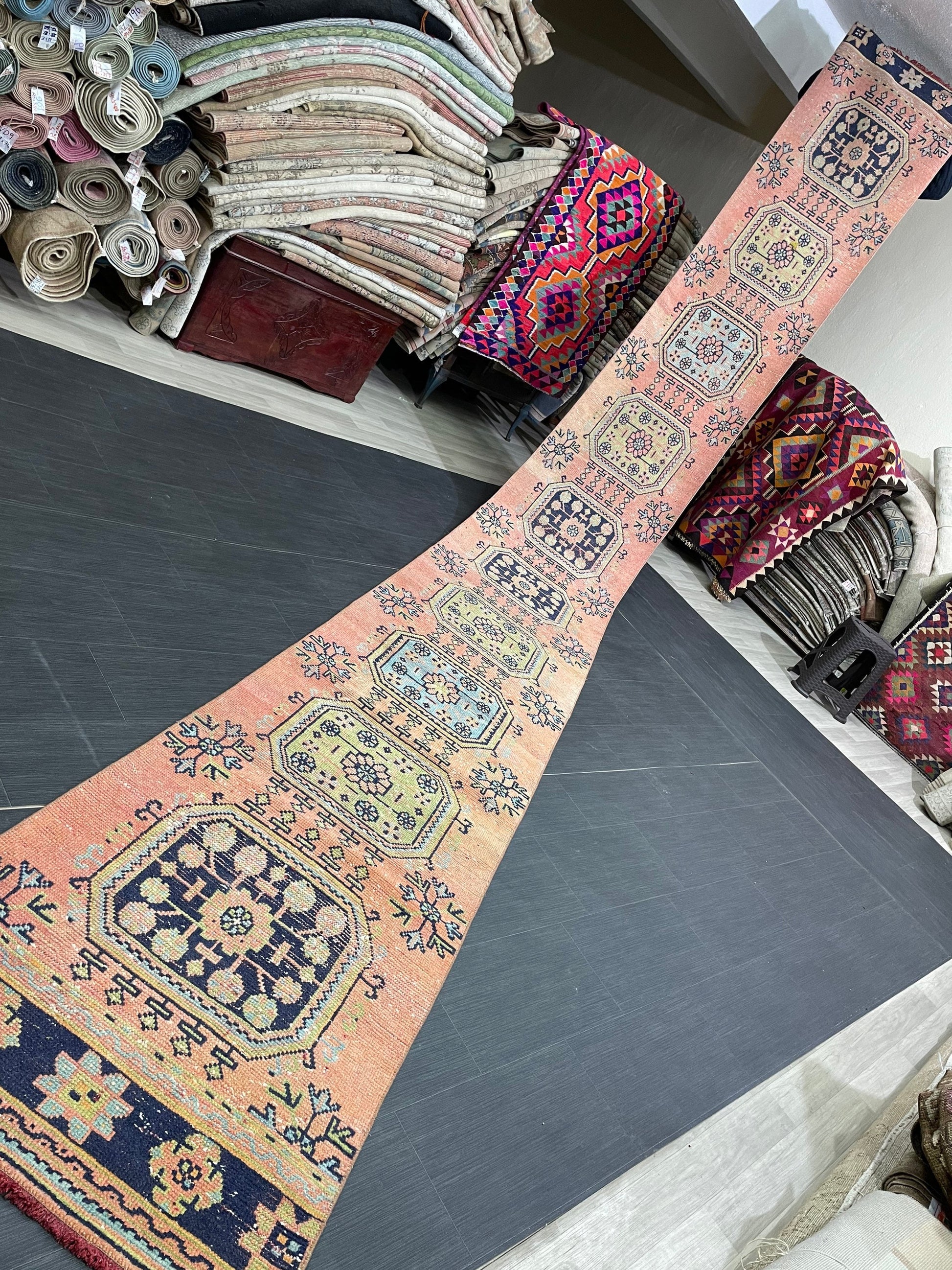 Staircase Runner Rug 2.5 x 21.5 Extra Long Wool TURKISH Runner Rug Vintage Runner Rug Oriental Runner Rug Wool Runner Hand Knotted Runner
