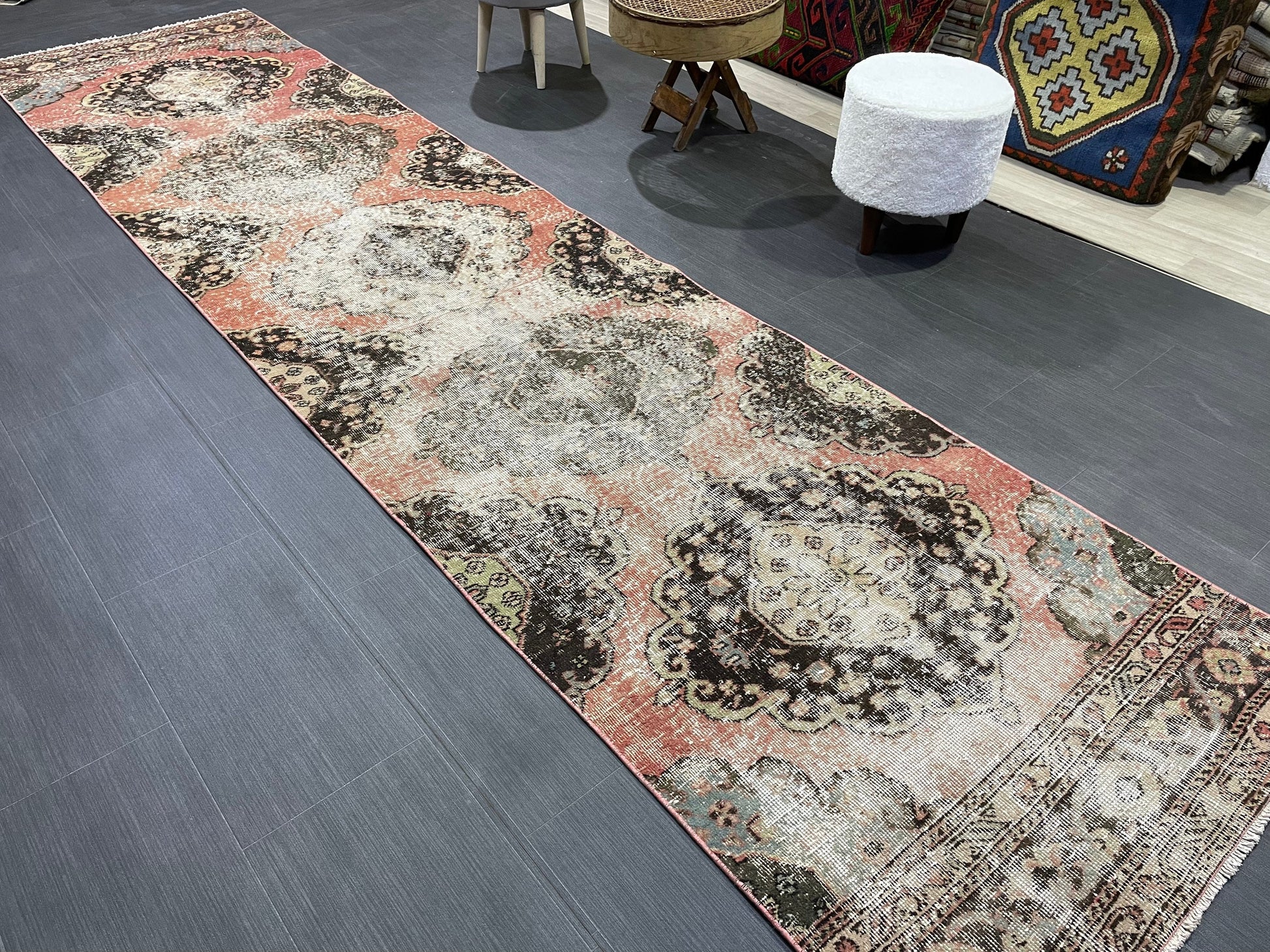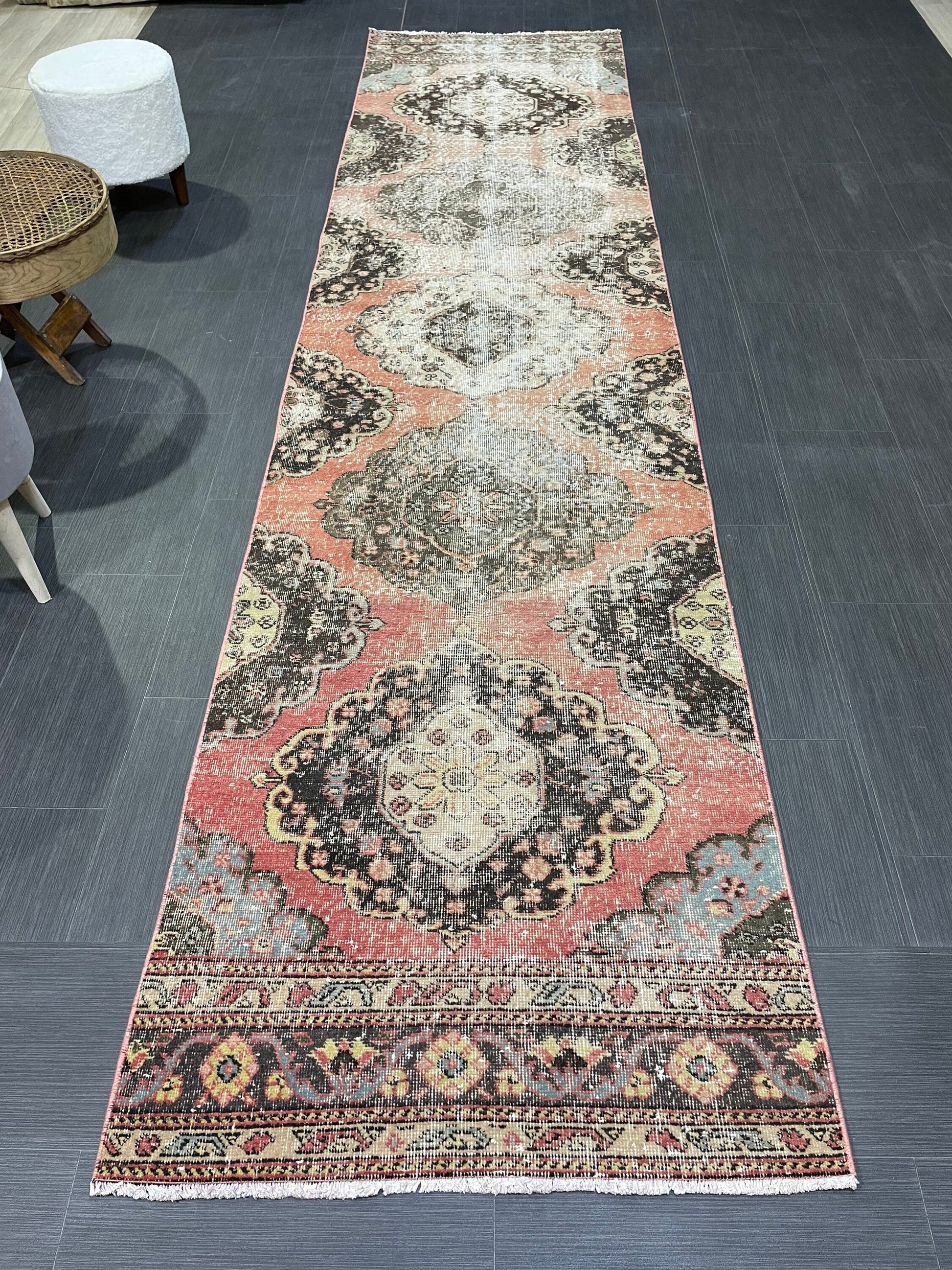 Turkish Distressed Runner Rug, Persian Runner 3 x 12 Rug, Vintage Runner Rug, Hallway Runner Rug, Kitchen Runner Rug, Wool Runner Rug