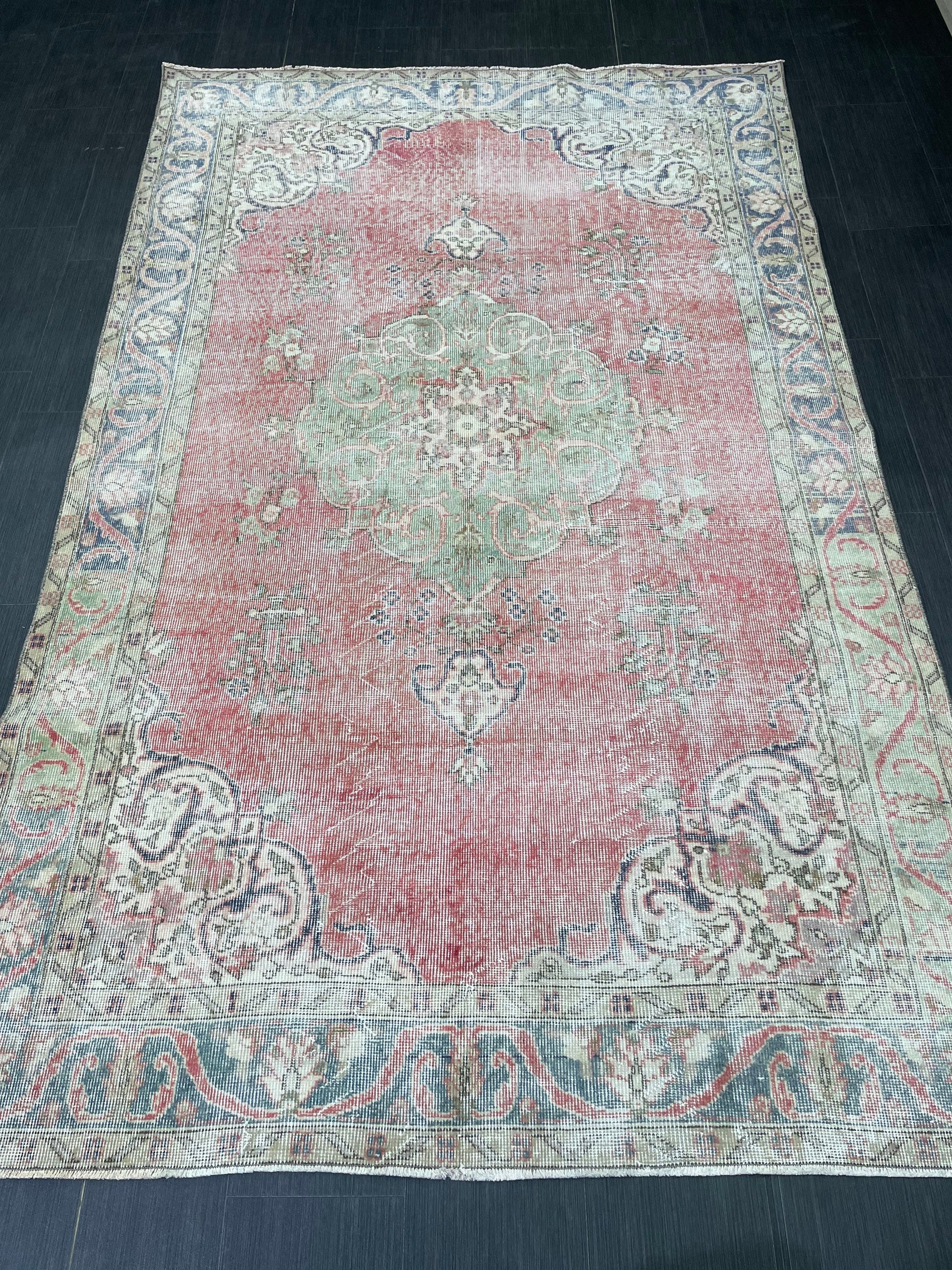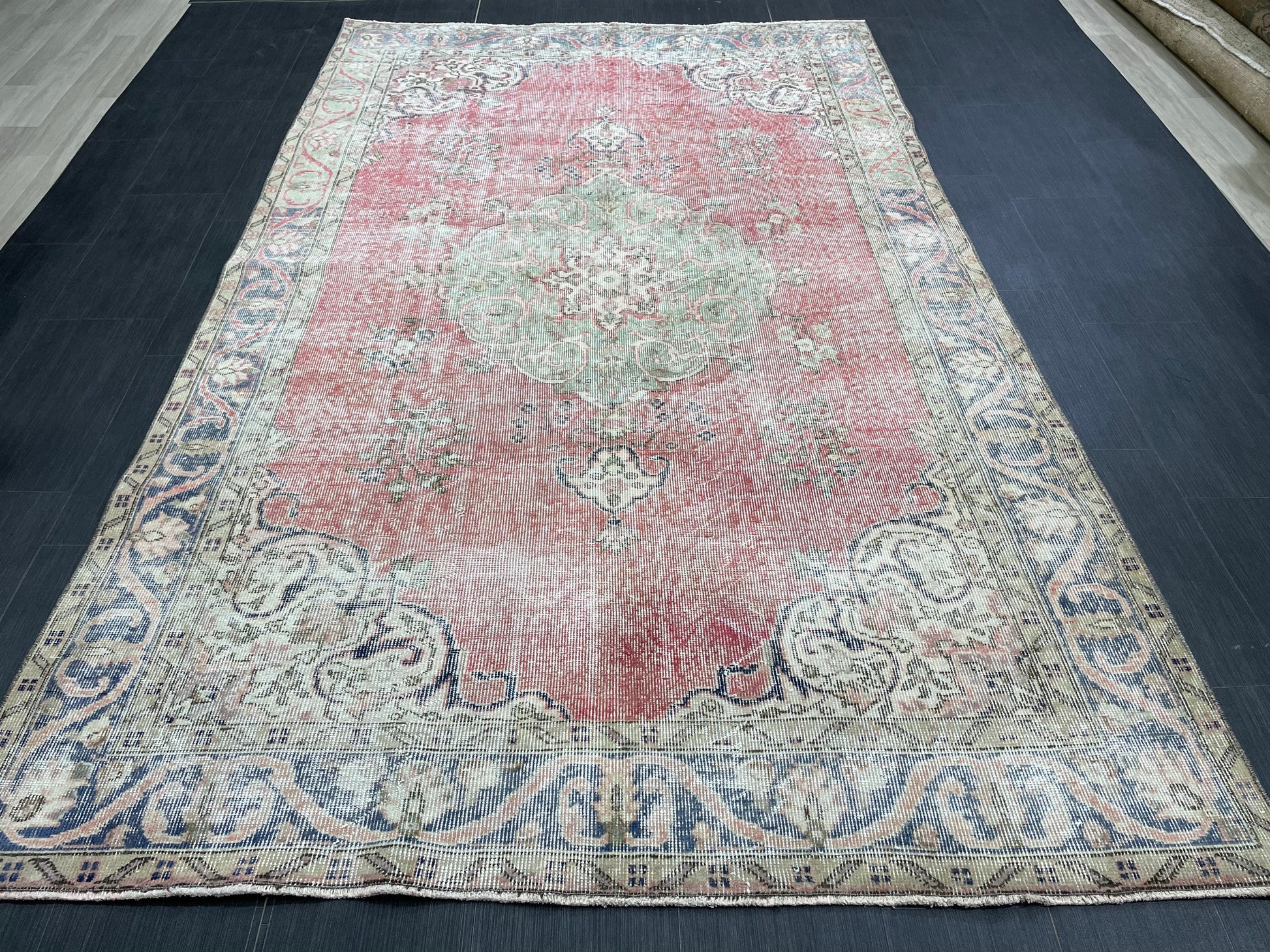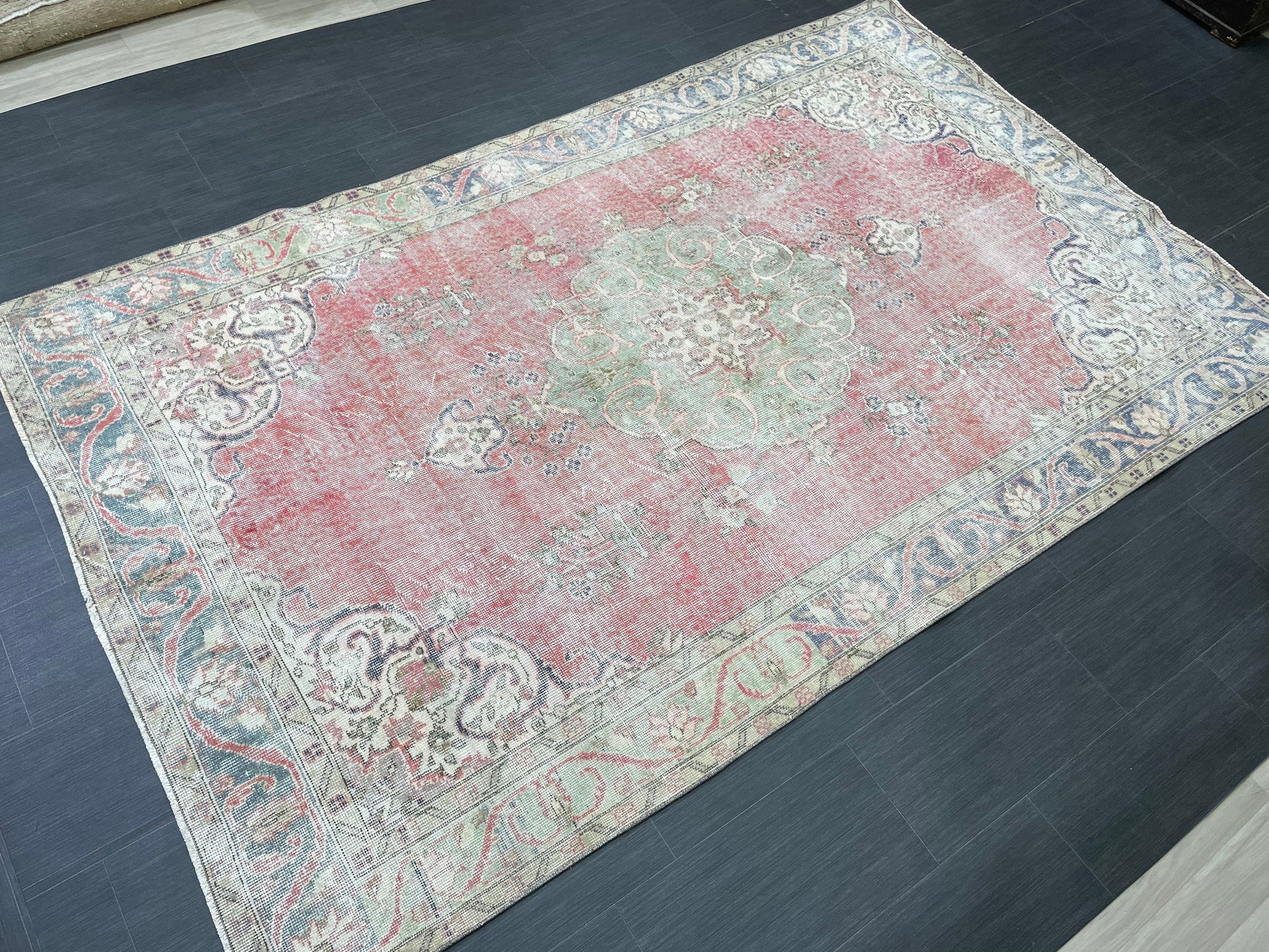 TURKISH HAND MADE Rug 5.6 x 9 Vintage Distressed Rug Oushak Rug Traditional Rug Oriental Rug Vintage Floral Rug Wool Rug