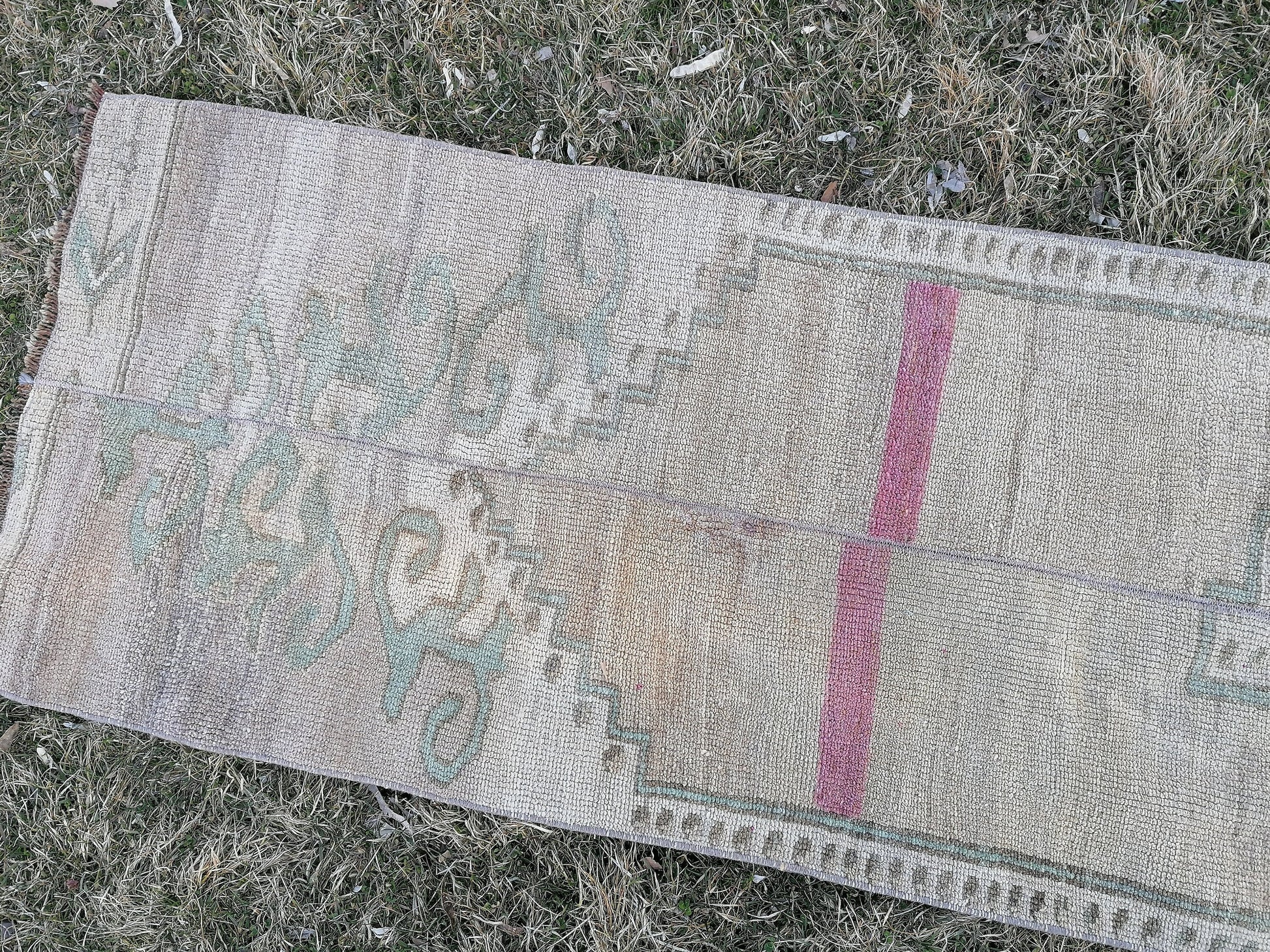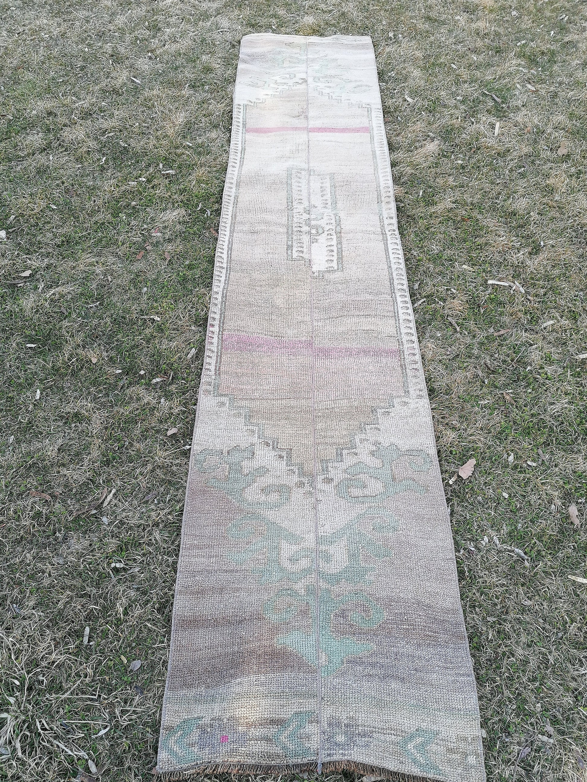 Turkish patchwork runner rug 2'2x11 neatural runner rug, vintage oushak rug, kitchen runner rug,hallway runner vintage runner rug