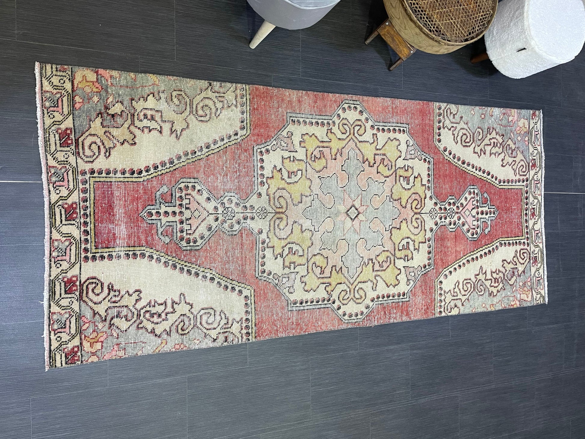 Turkish Rug, 3.3 x 7.7 Vintage Rug,Handmade Oushak Rug, Farmhouse Rug, Wool Hand Knotted Rug, Traditional Rug, Vintage Turkish Rug