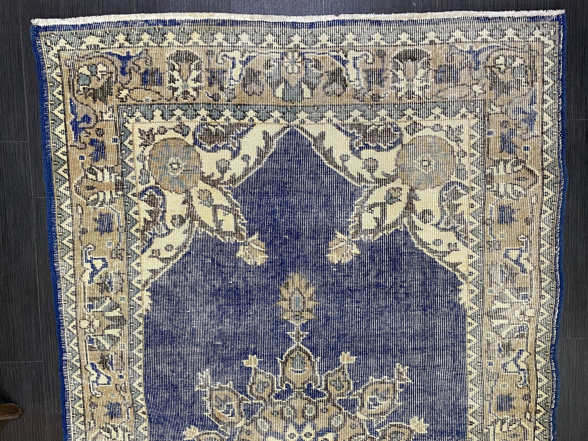 Turkish Rug, Blue Oushak Rug, Hand Knotted 5x7 Rug, Wool Distressed Rug, Persian Rugs, Antique Rug, Vintage Rug, Handmade Rug