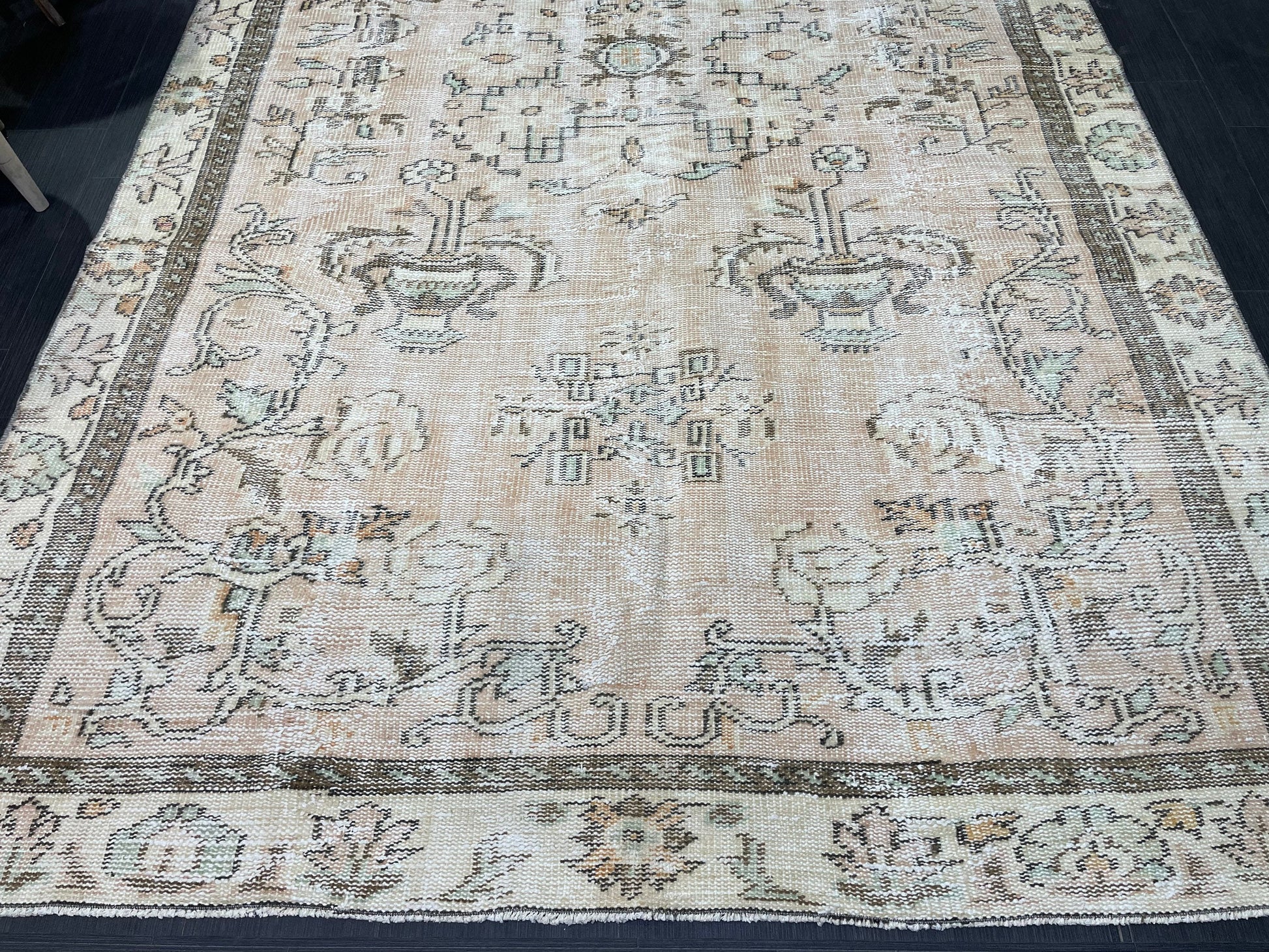 Turkish Rug, Distressed 6.6 x 9.4 Vintage Rug, Oushak Rug, Wool Oriental Rugs, Handmade Rug, Persian Rug, Vintage Turkish Rug, Farmhouse Rug