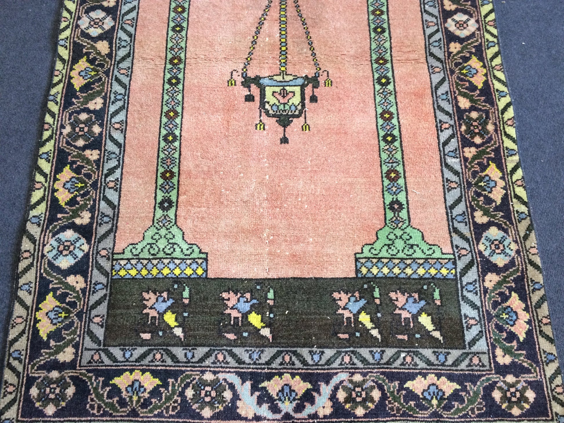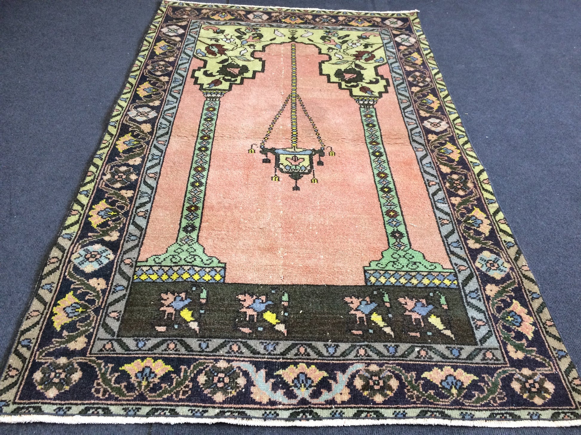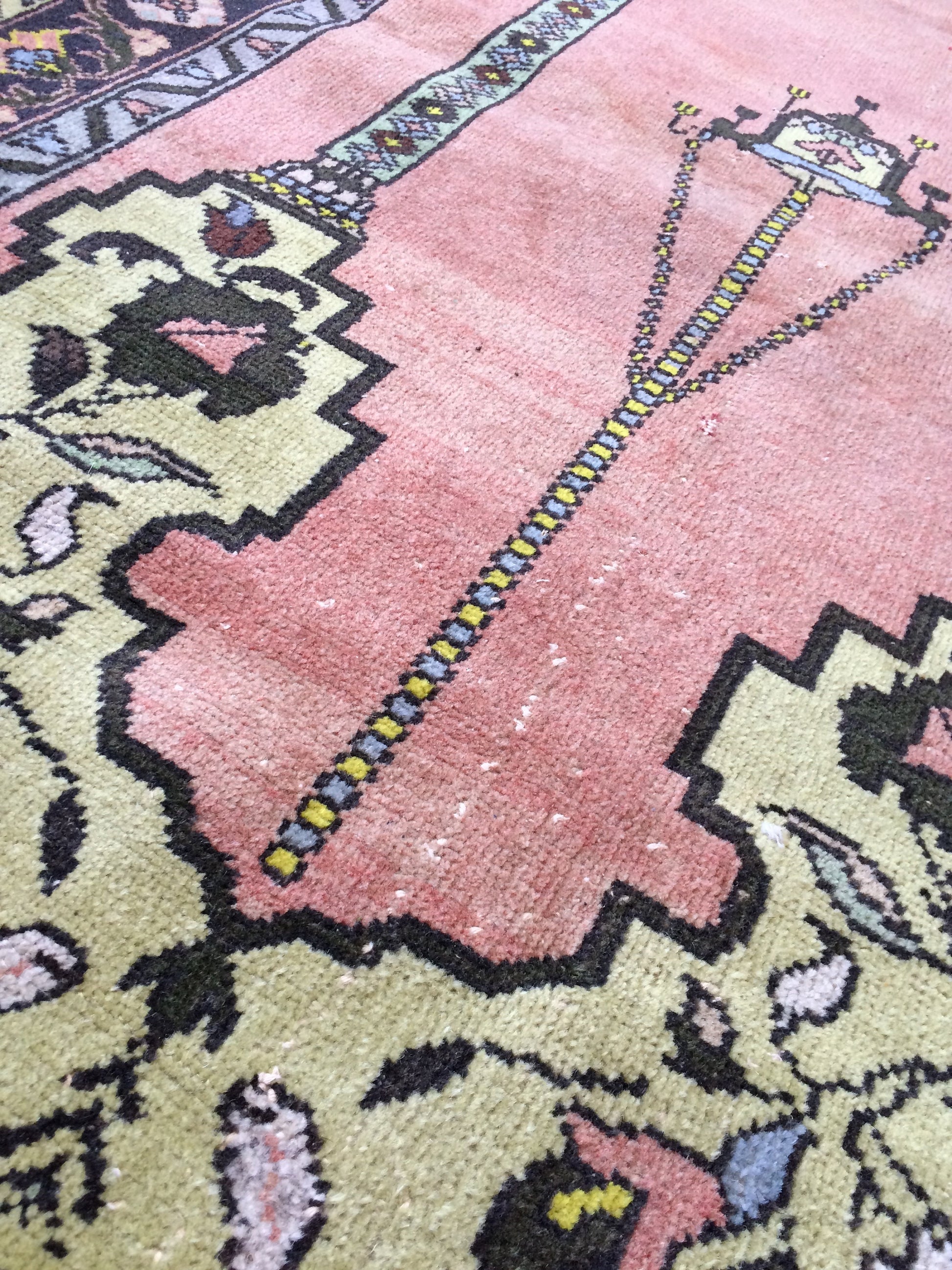 *A vintage handmade Turkish rug made of hand spun wool and double knotted on sturdy cotton foundation,