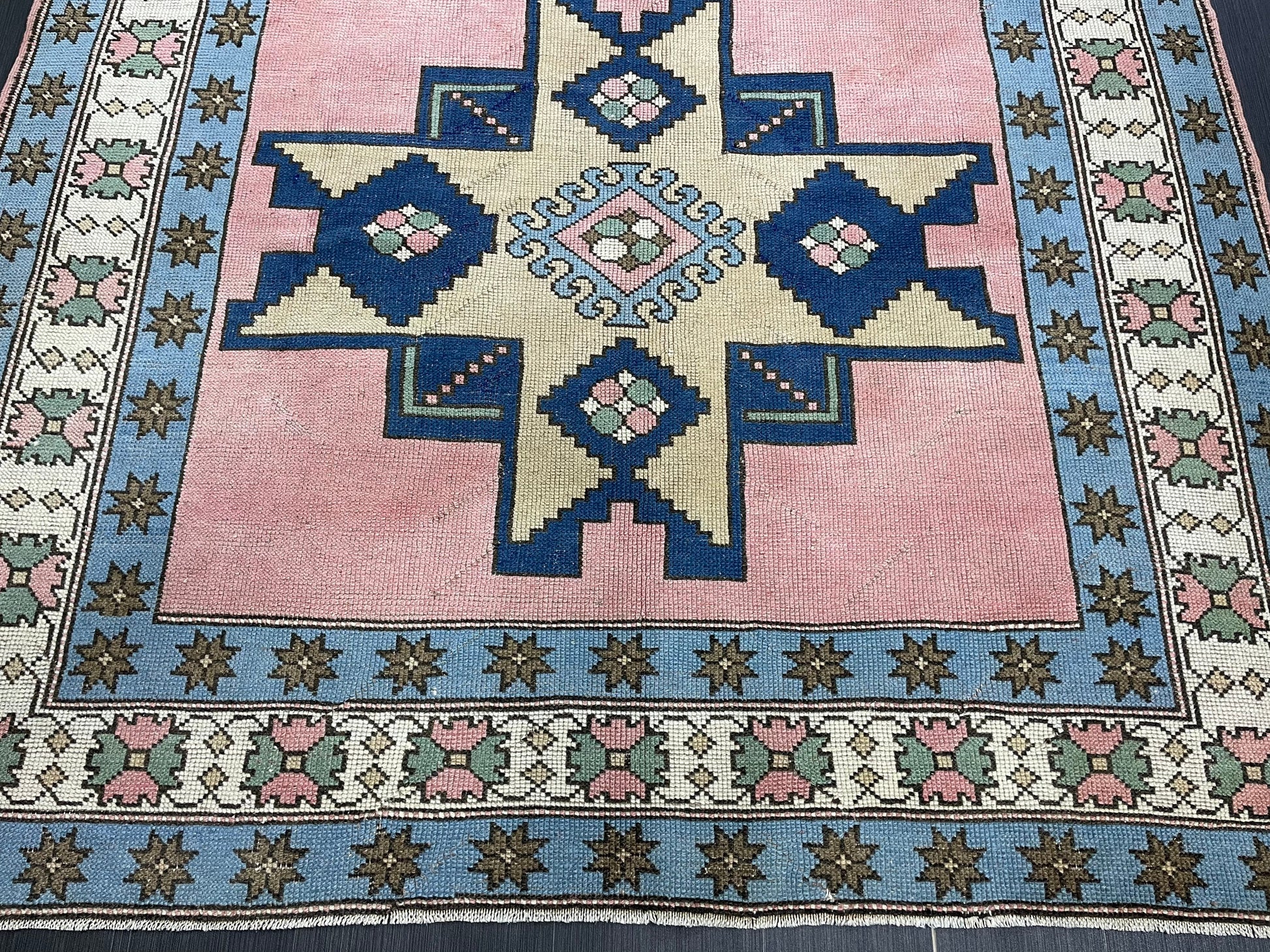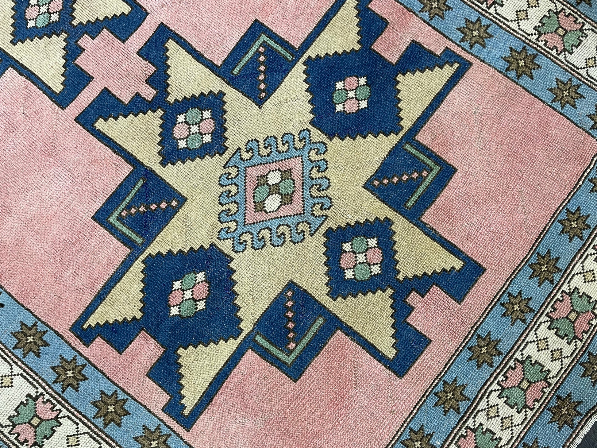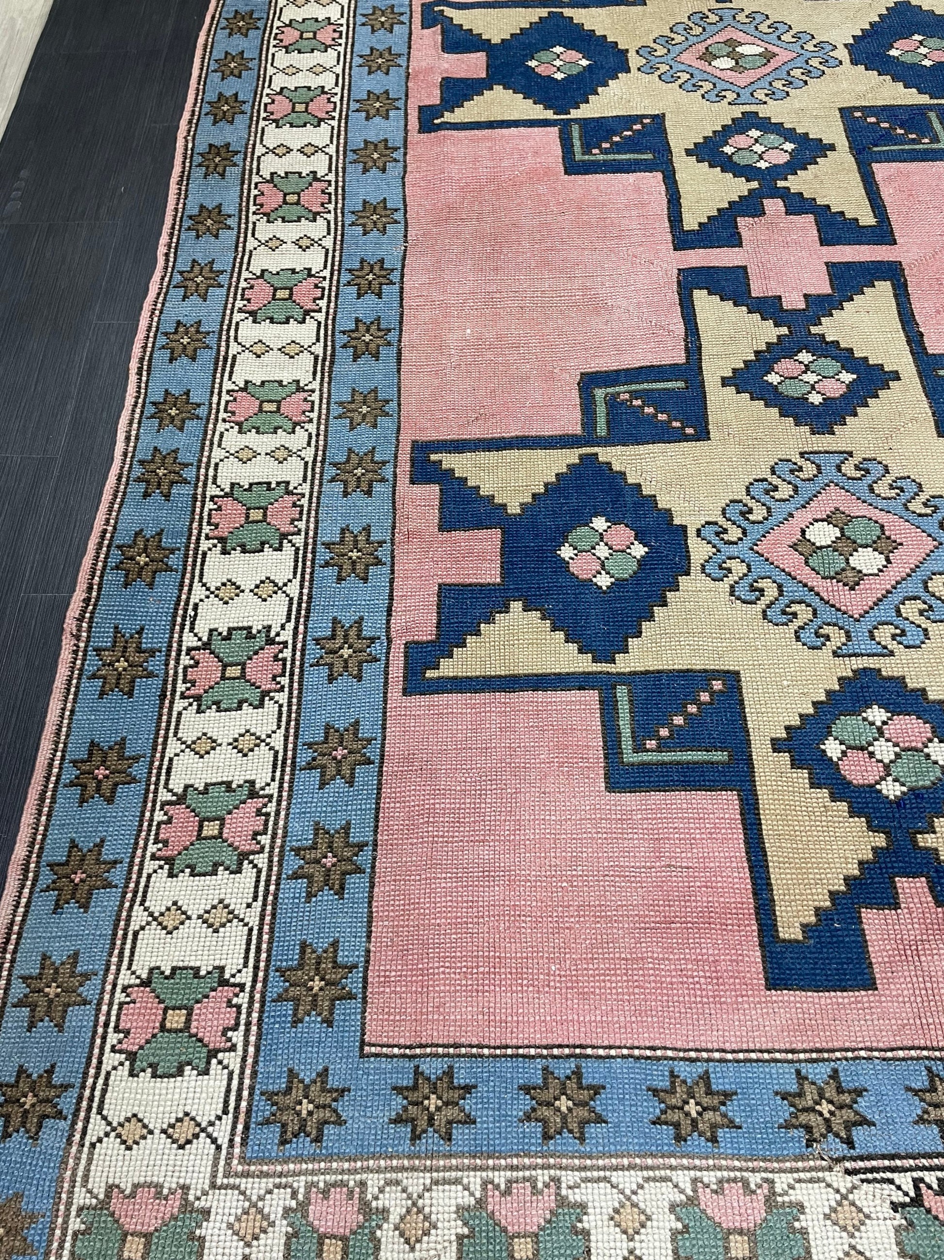 Turkish Rug Vintage 6.6 x 9.8 Rug Antique Rug Vintage Blue Pink Rug Wool